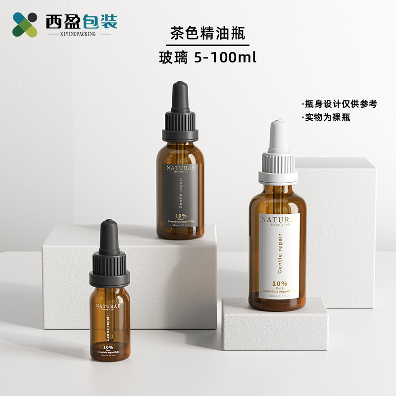 5-100ml茶色精油瓶精华液瓶磨砂玻璃滴管瓶原液分装瓶避光护肤瓶