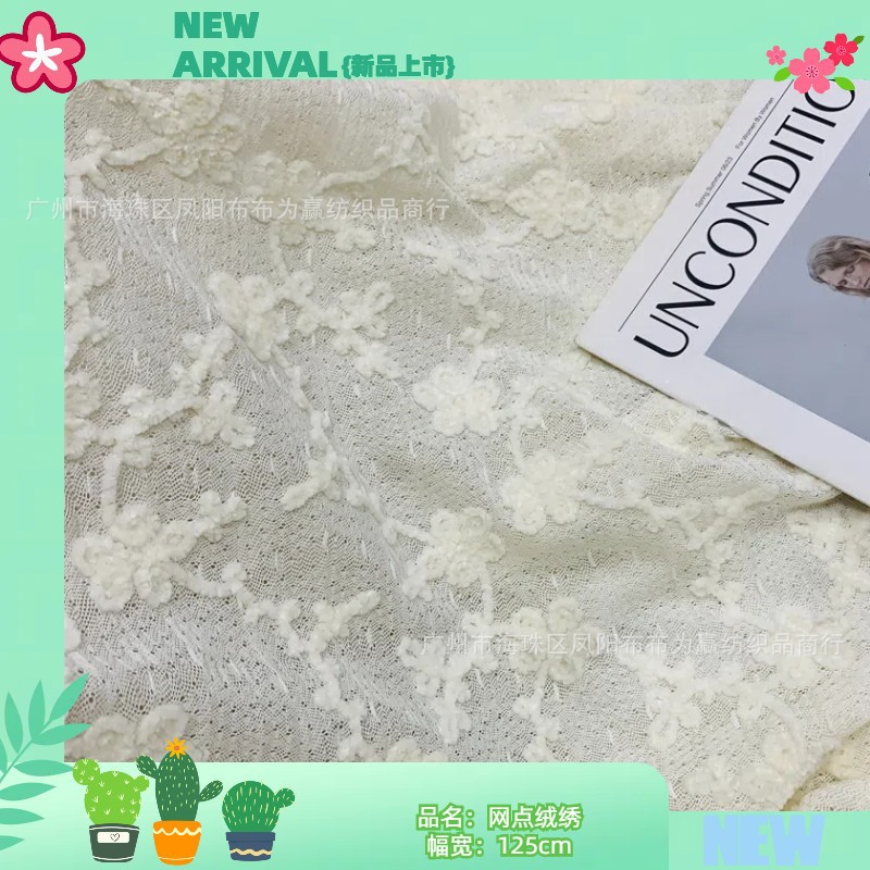 ナイロンとベルベットの羽糸レース生地の透かし彫り梅のファッションワンピース子供服レース生地