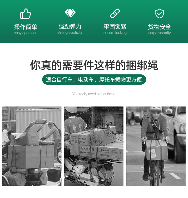 オートバイ荷物弾力ロープ高弾力フック付きトランク固定棚付き電気自動車結束ロープ