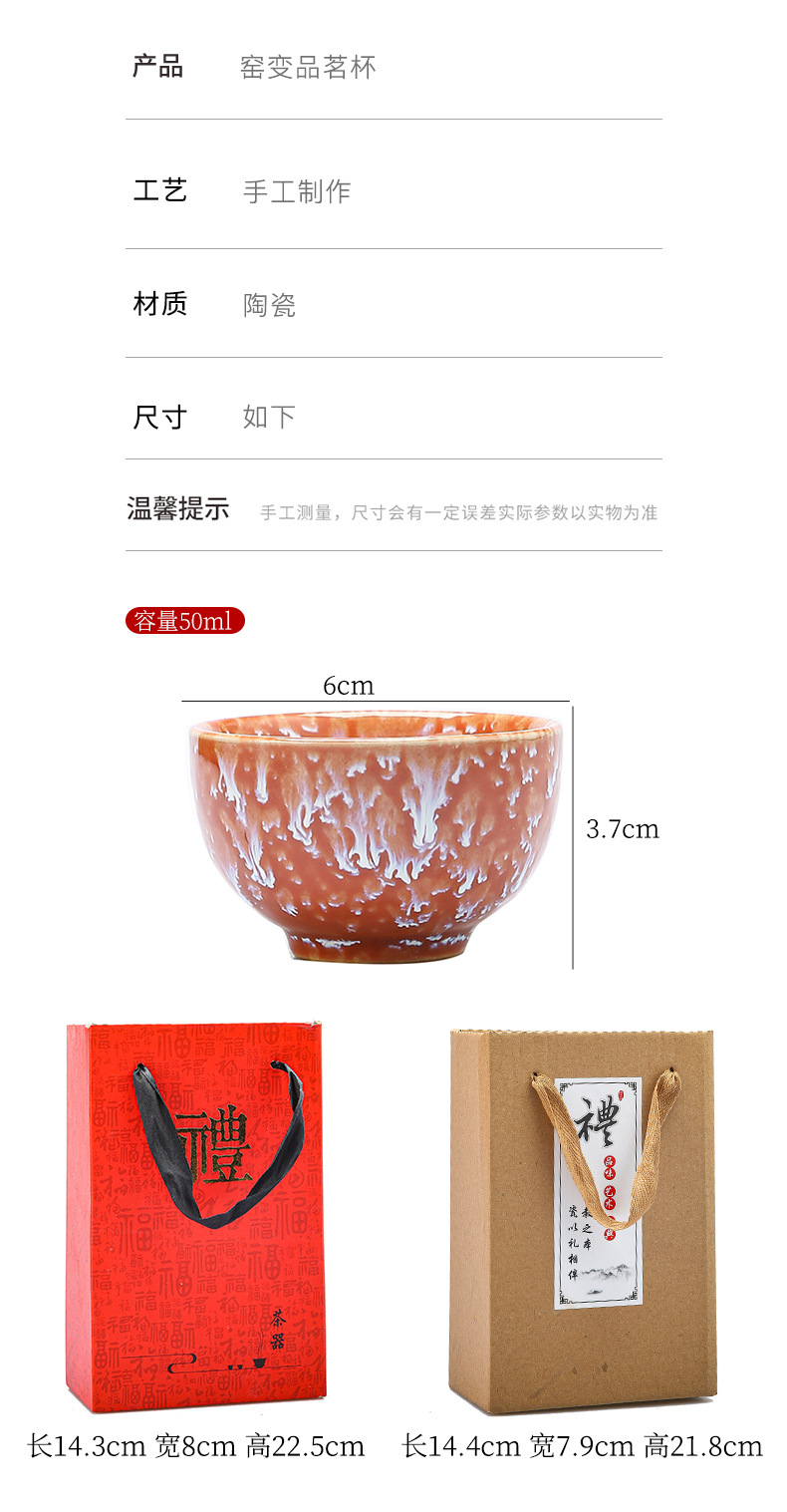 窯変品茗杯天目釉薬建杯小茶杯六色礼箱セット工夫茶具陶磁器茶杯小茶杯