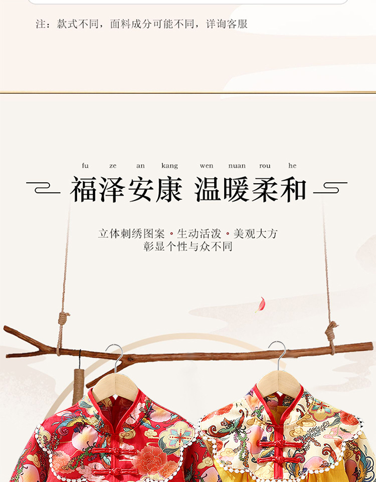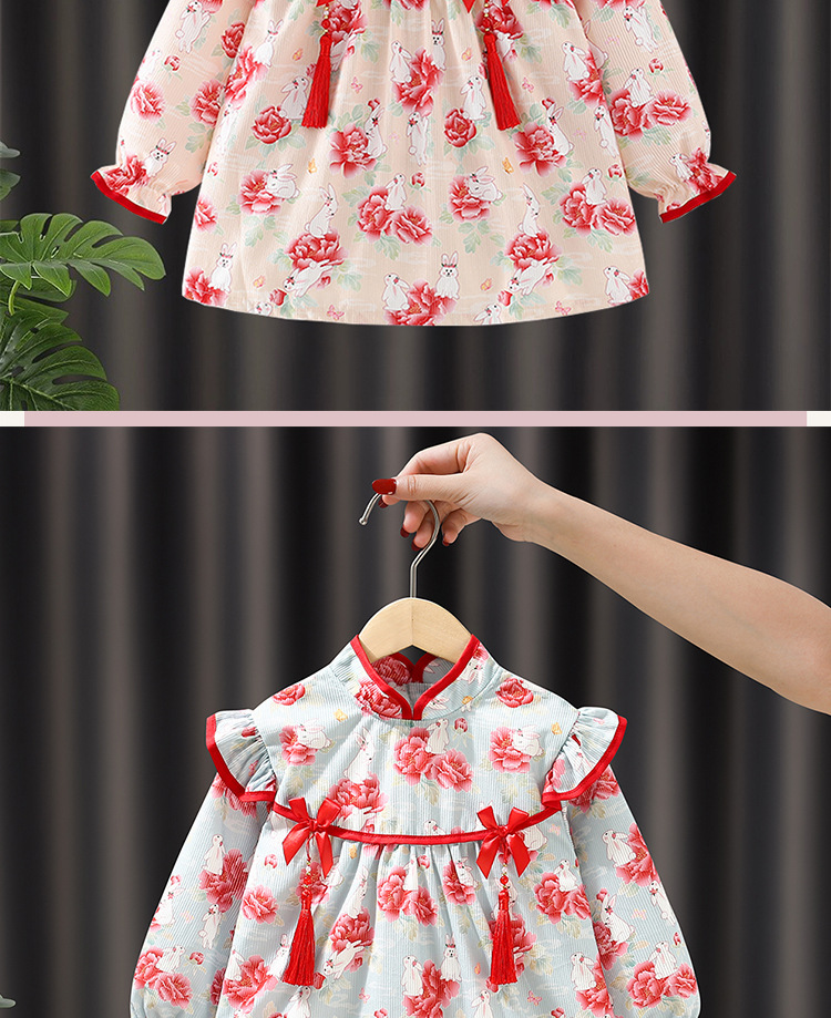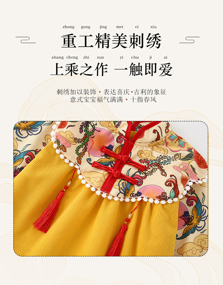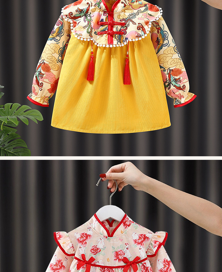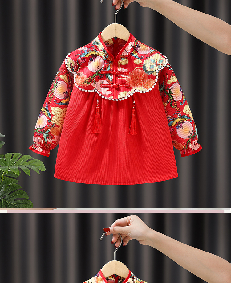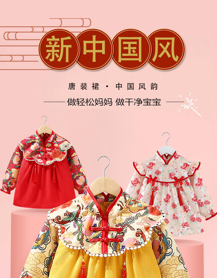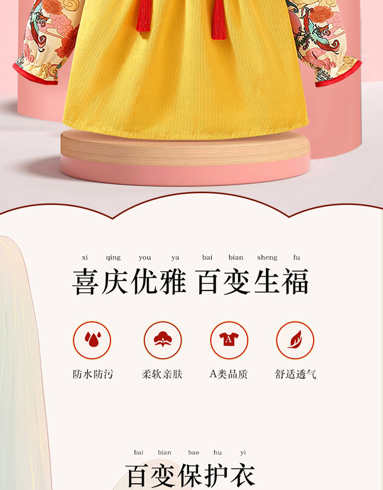 子供用ブラウス秋冬長袖防水女赤ちゃん中国風プリンセススカート外着洋気赤ちゃん食事服保護服