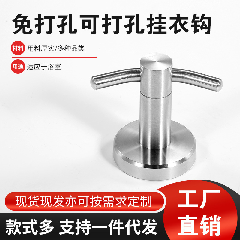 跨境不锈钢吸盘挂钩衣钩毛巾钩免打孔强承重衣帽钩墙门后浴室厨房