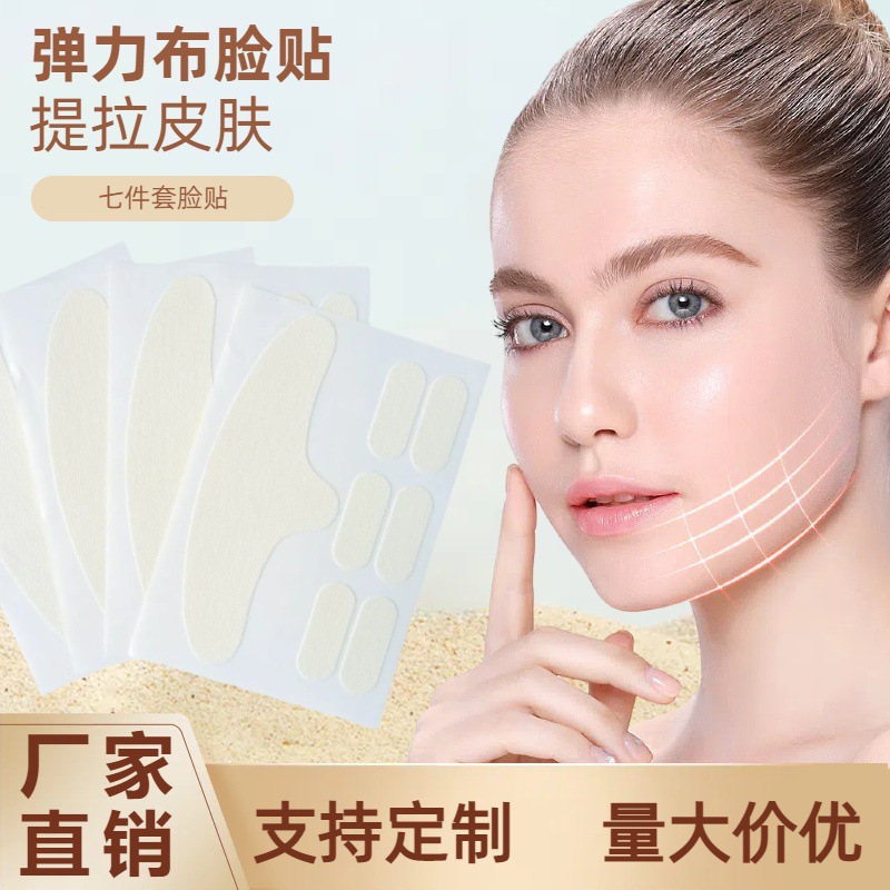 クロスボーダーフェイシャルリフティング7点セット しわ防止パッチ 額パッチ T字型ほうれい線 あご額 引き締め弾性布