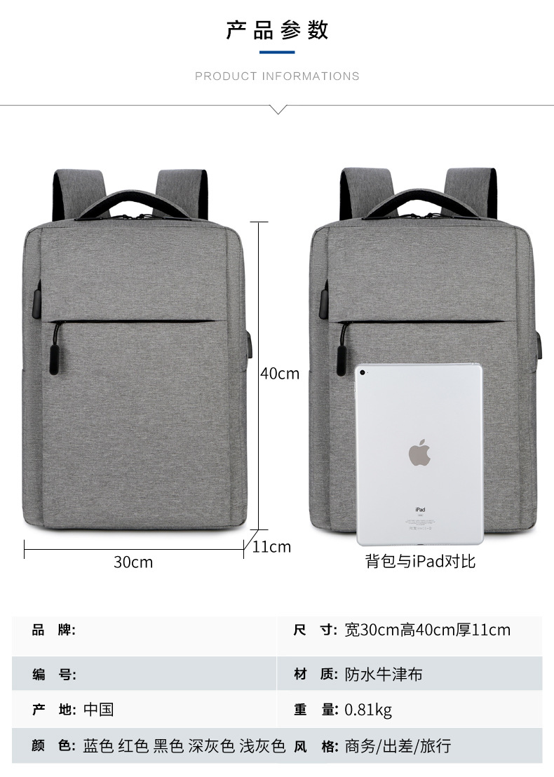 越境ビジネス通勤用ノートパソコンバッグ 新型シンプル無地ビジネスリュック 大学生カジュアルバックパック