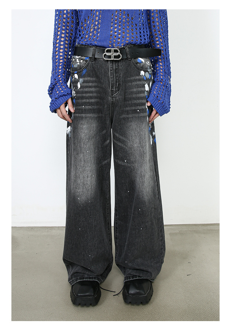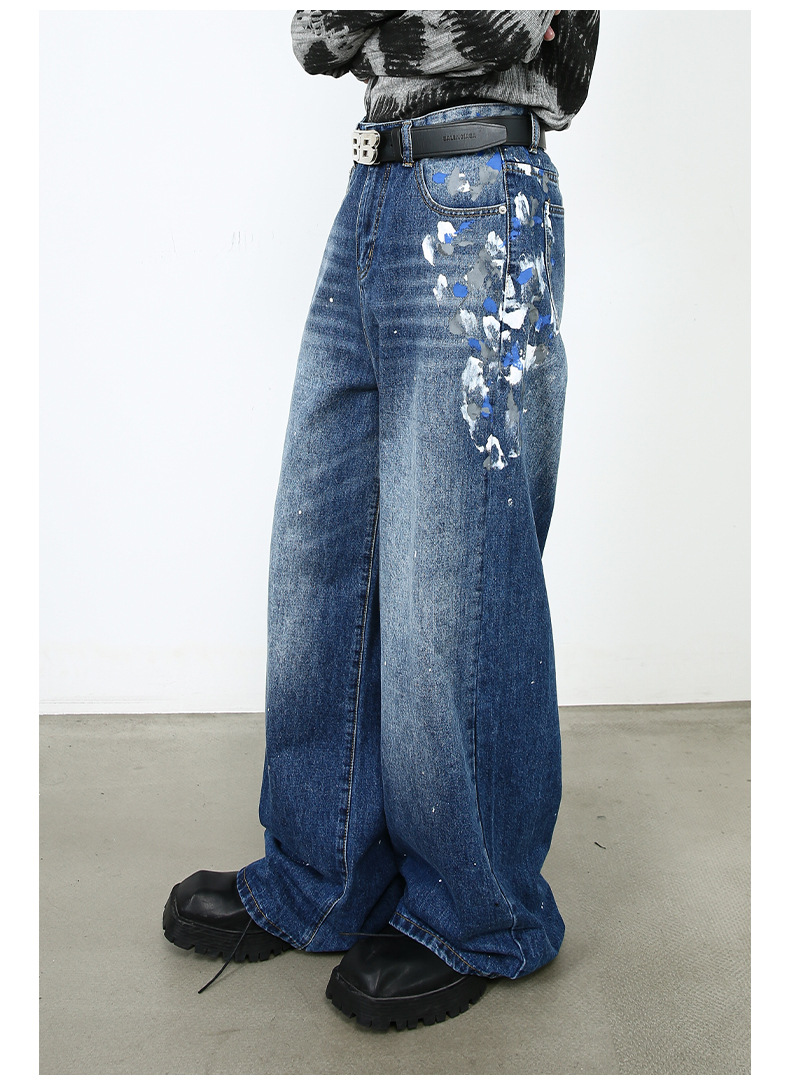 Nirbenカウボーイ | 国潮手描きデザイン感小衆ジーンズ男insアメリカ式高街ズボンカップル潮