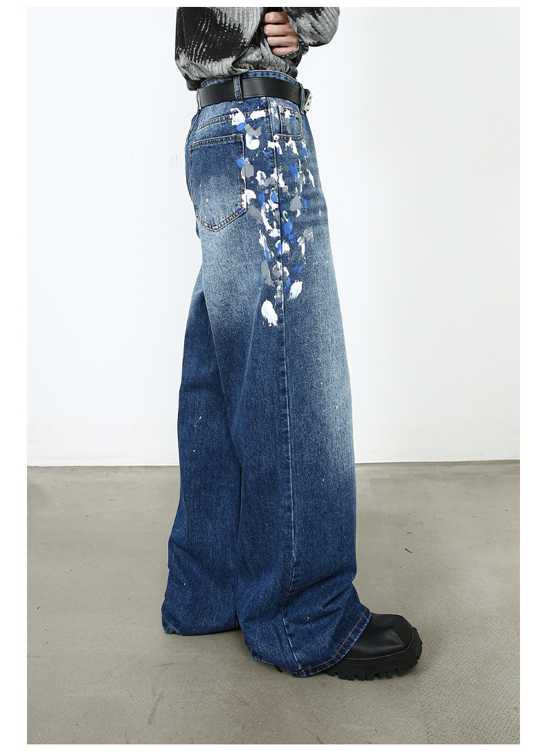 Nirbenデニム | 新商品韓国版個性ジーンズ男性直筒潮牌水洗いinsゆるい広脚長ズボン