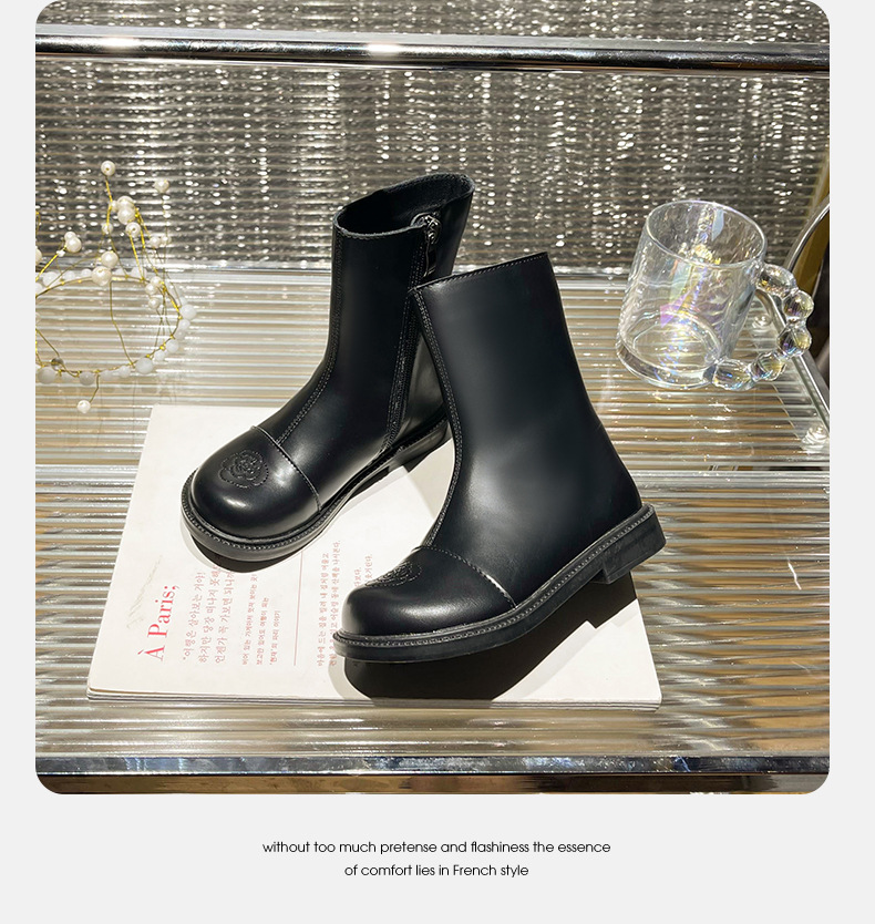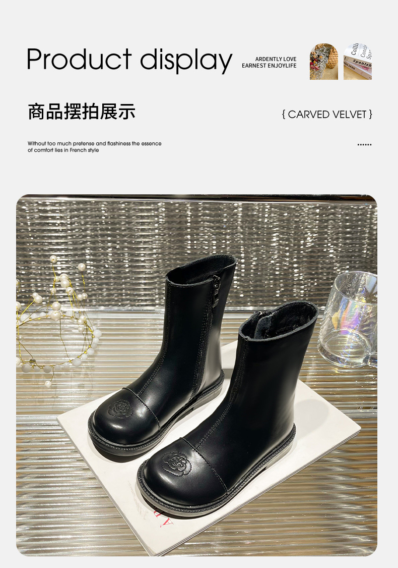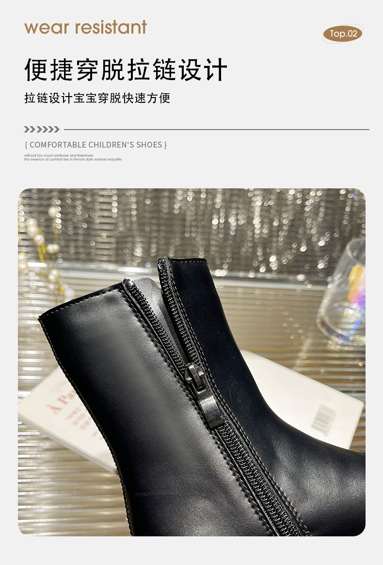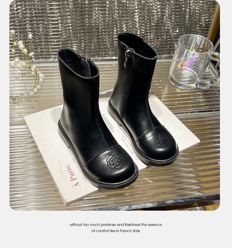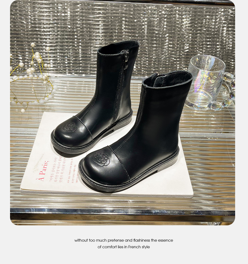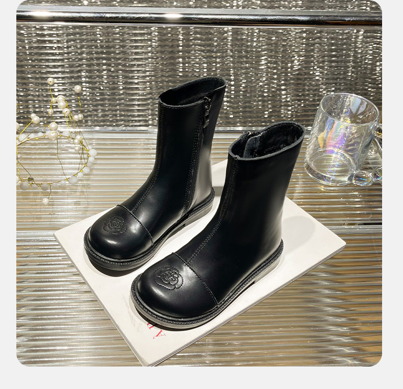 女の子用ブーツ、小香風冬靴、子供用マーティンブーツ、ソフトソールレザーブーツ、2025秋冬、裏起毛、女の子用シングルブーツ