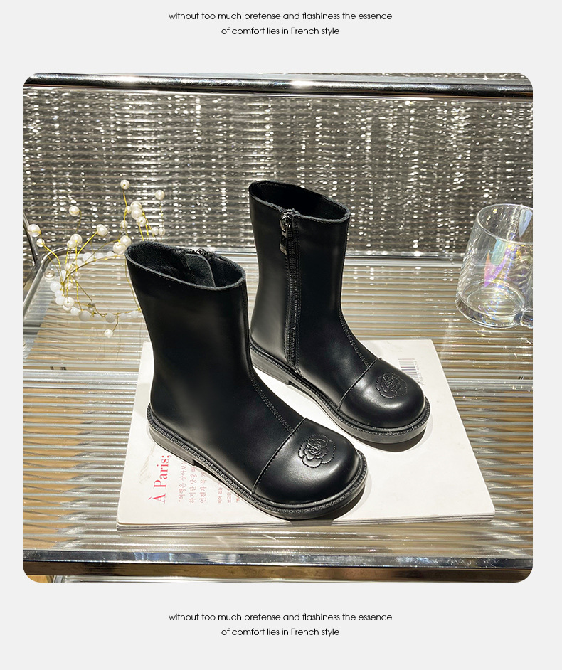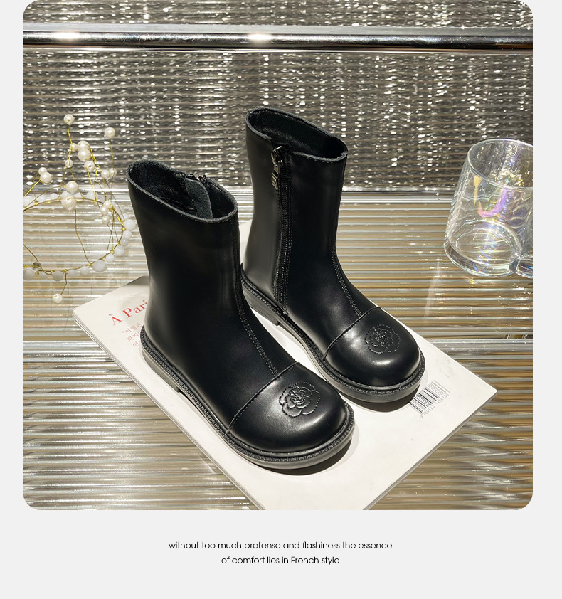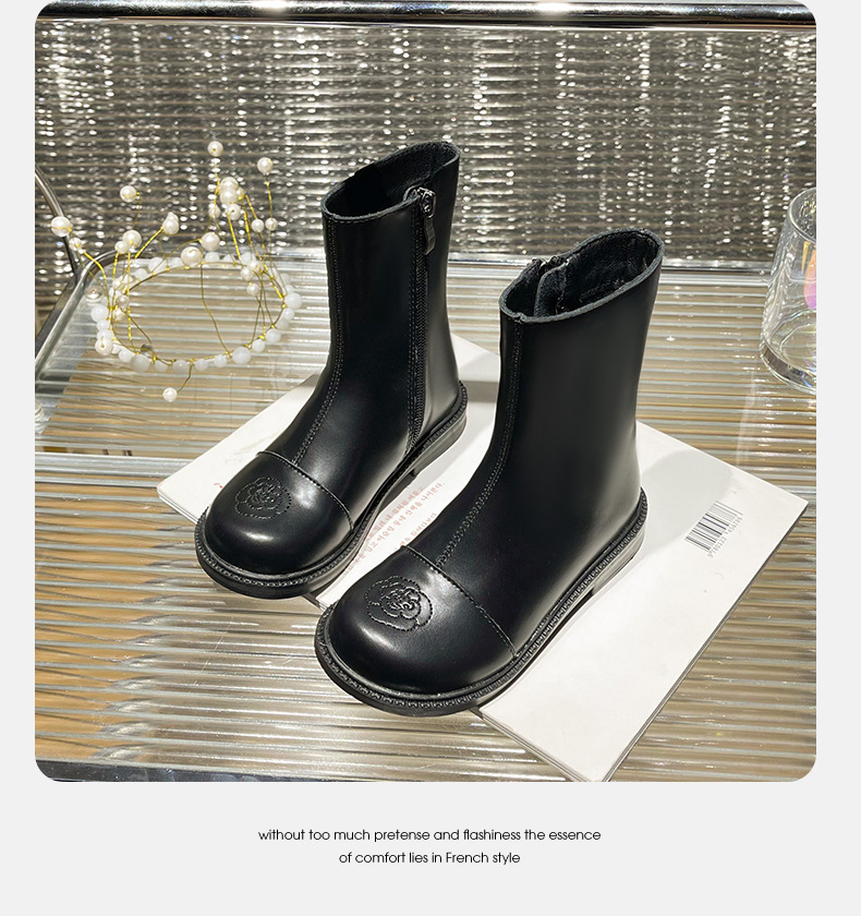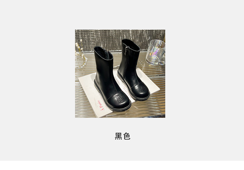 女童短靴2025秋季新款儿童小香风百搭鞋子黑色皮靴软底宝宝公主靴