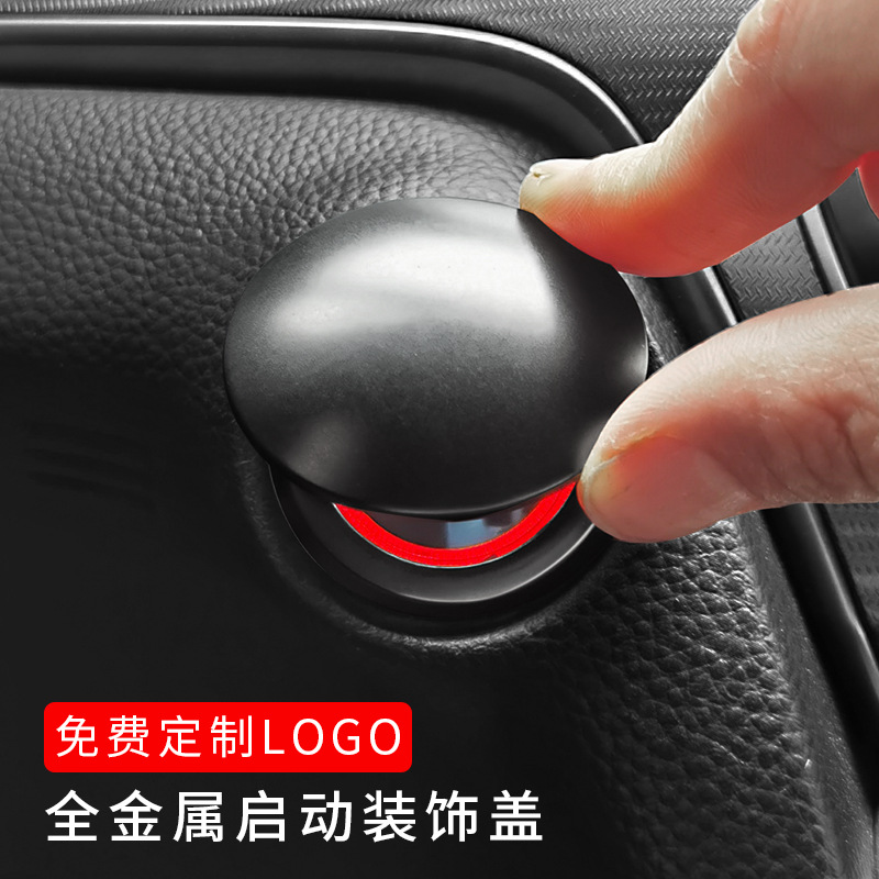 全金属ワンタッチ起動装飾カバー点火ノブに自動車電気自動車の内装用品を貼り付けて改造します。