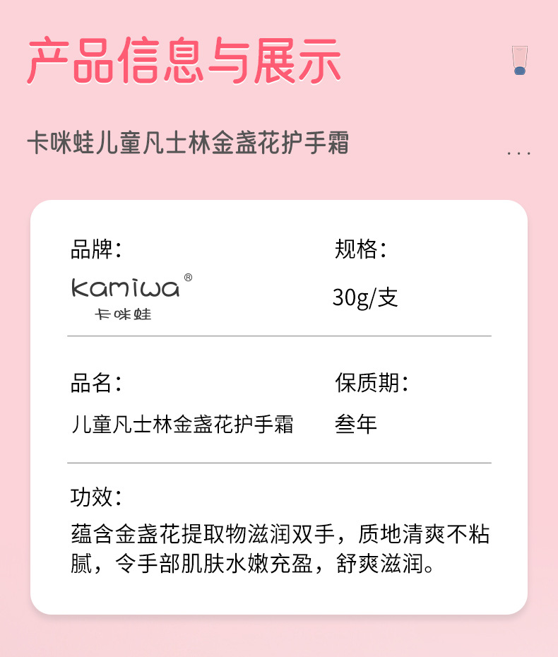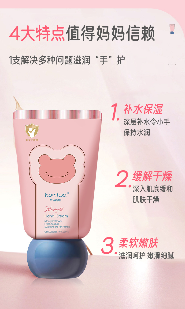カミガエル子供ワセリンスイカズラのハンドクリームは水を補って保湿します。