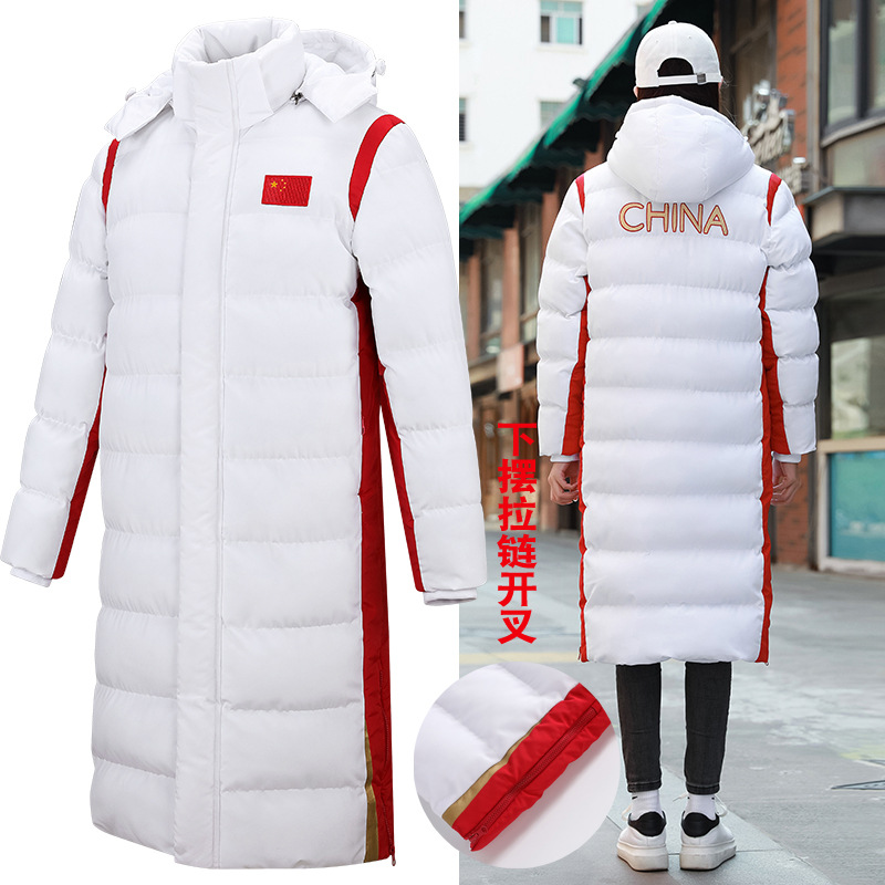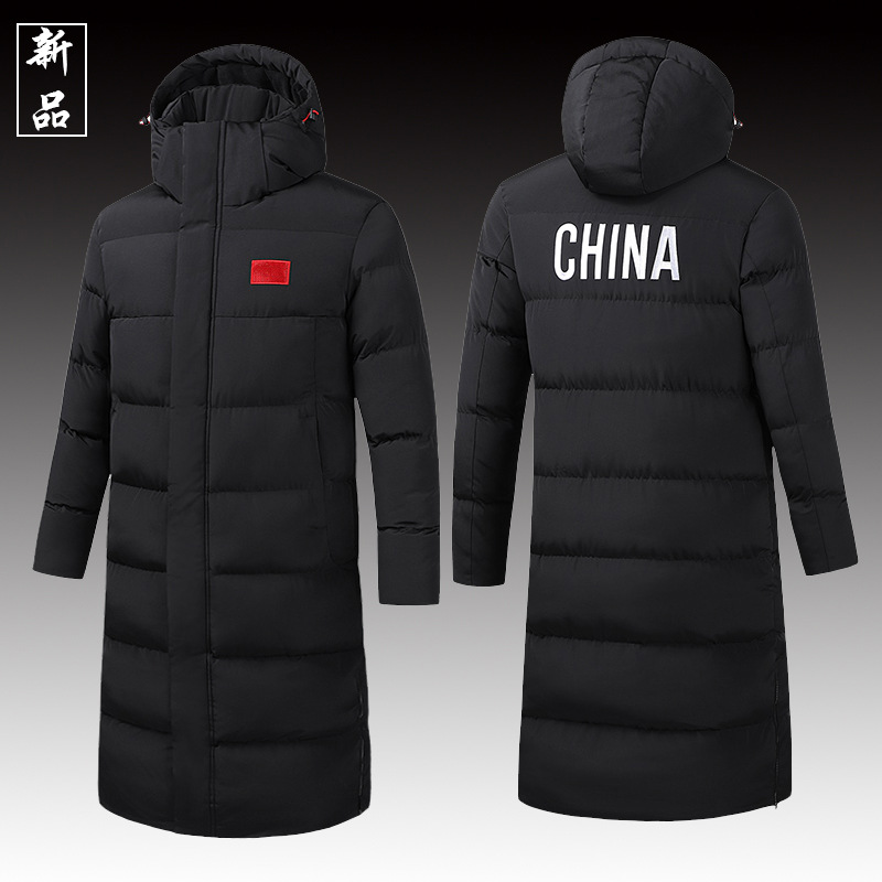 中国チーム用膝丈以上ロングスポーツコート、ダウンジャケット、男女兼用サッカー冬期トレーニング、体育試験用ジャケット、カスタムメイド