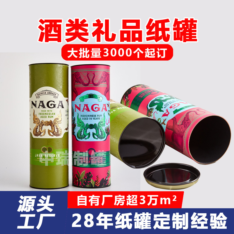 卸売り洋酒白酒プレゼント円形紙缶包装箱箔押し印刷円筒赤ワイン紙筒紙缶メーカー