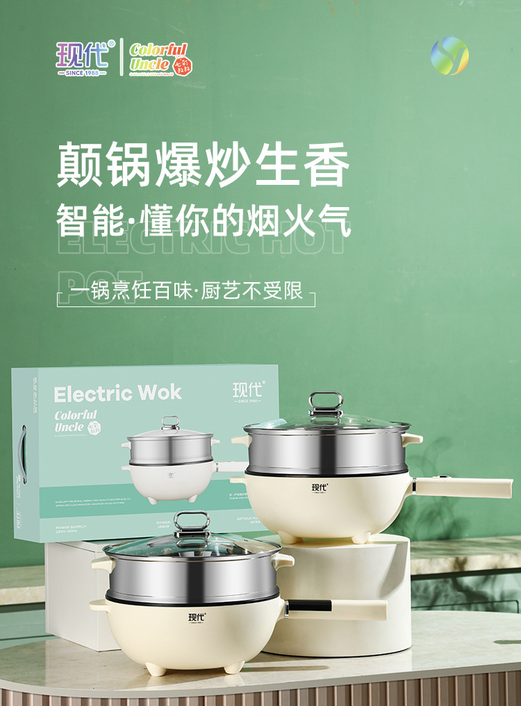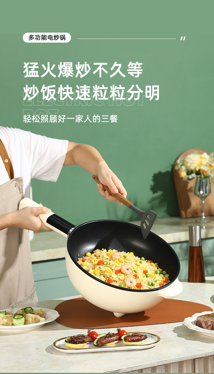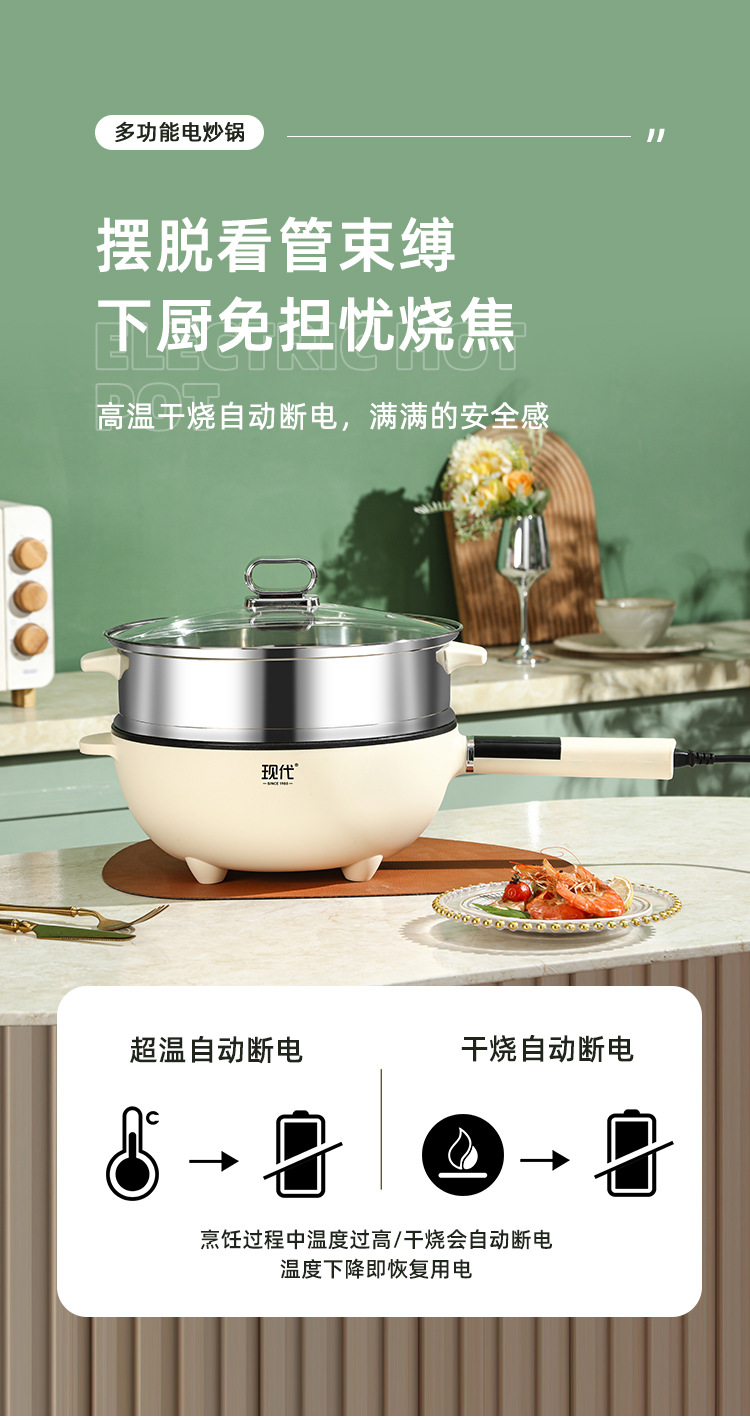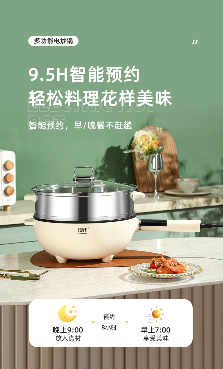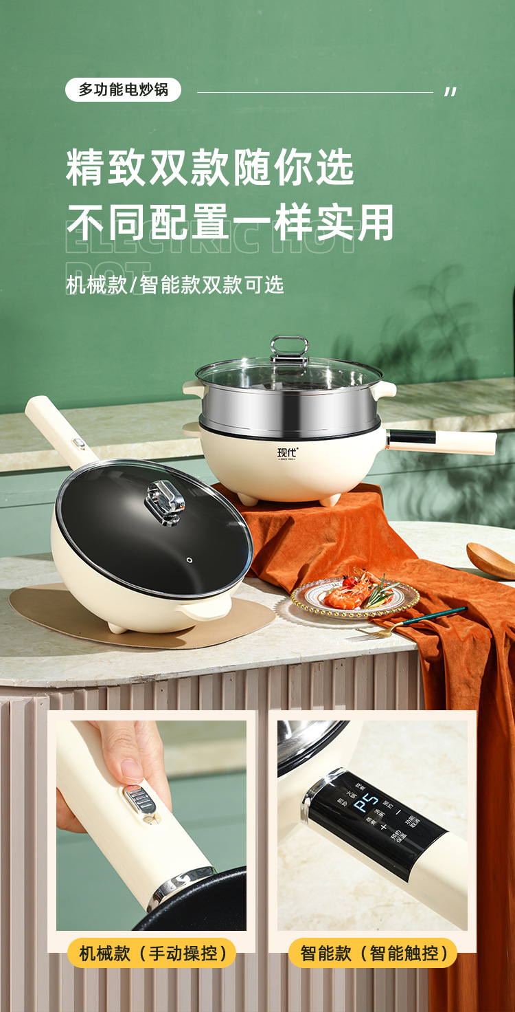 现代腾行电炒锅双层厨房多功能蒸煮涮煎炒菜锅一体不粘智能电煮锅