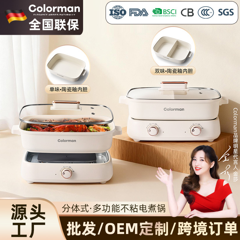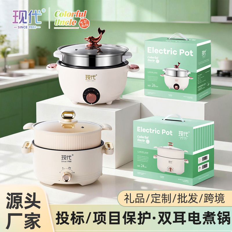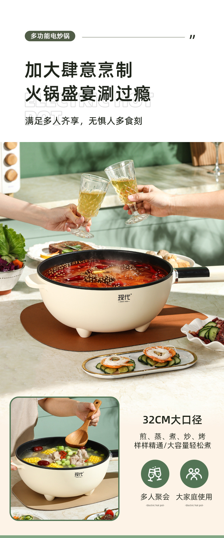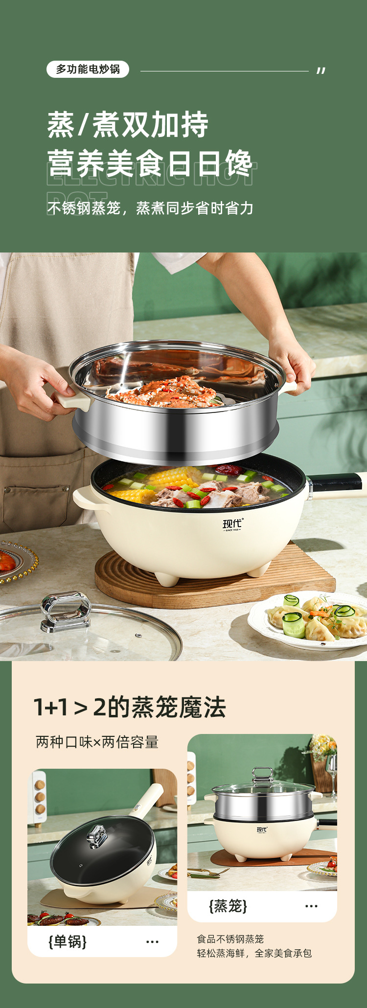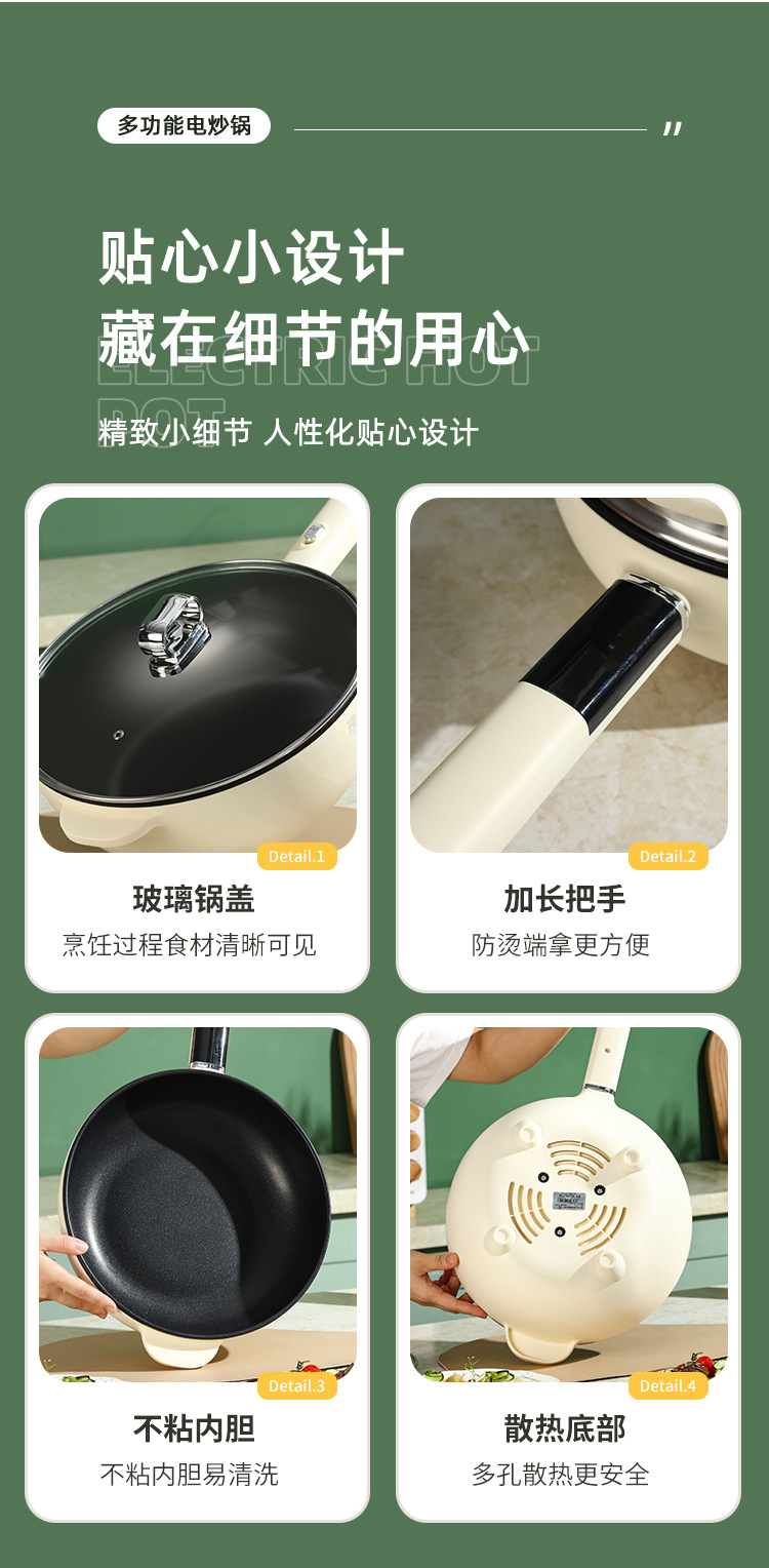 现代腾行电炒锅双层厨房多功能蒸煮涮煎炒菜锅一体不粘智能电煮锅