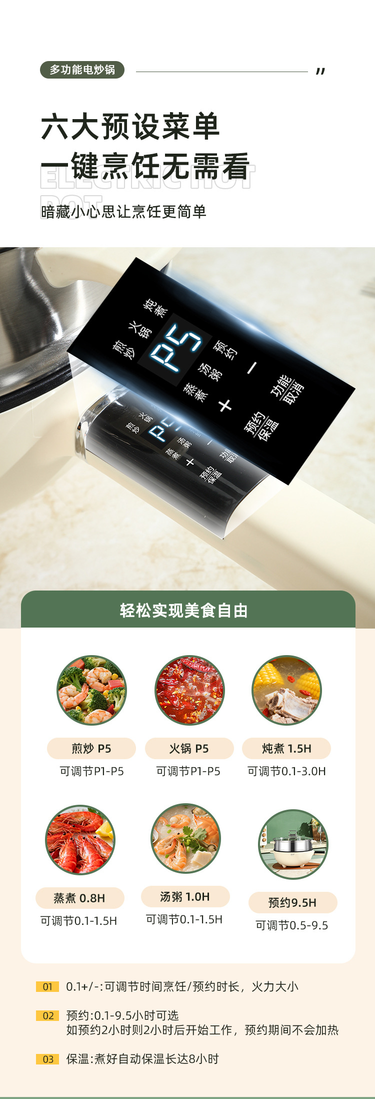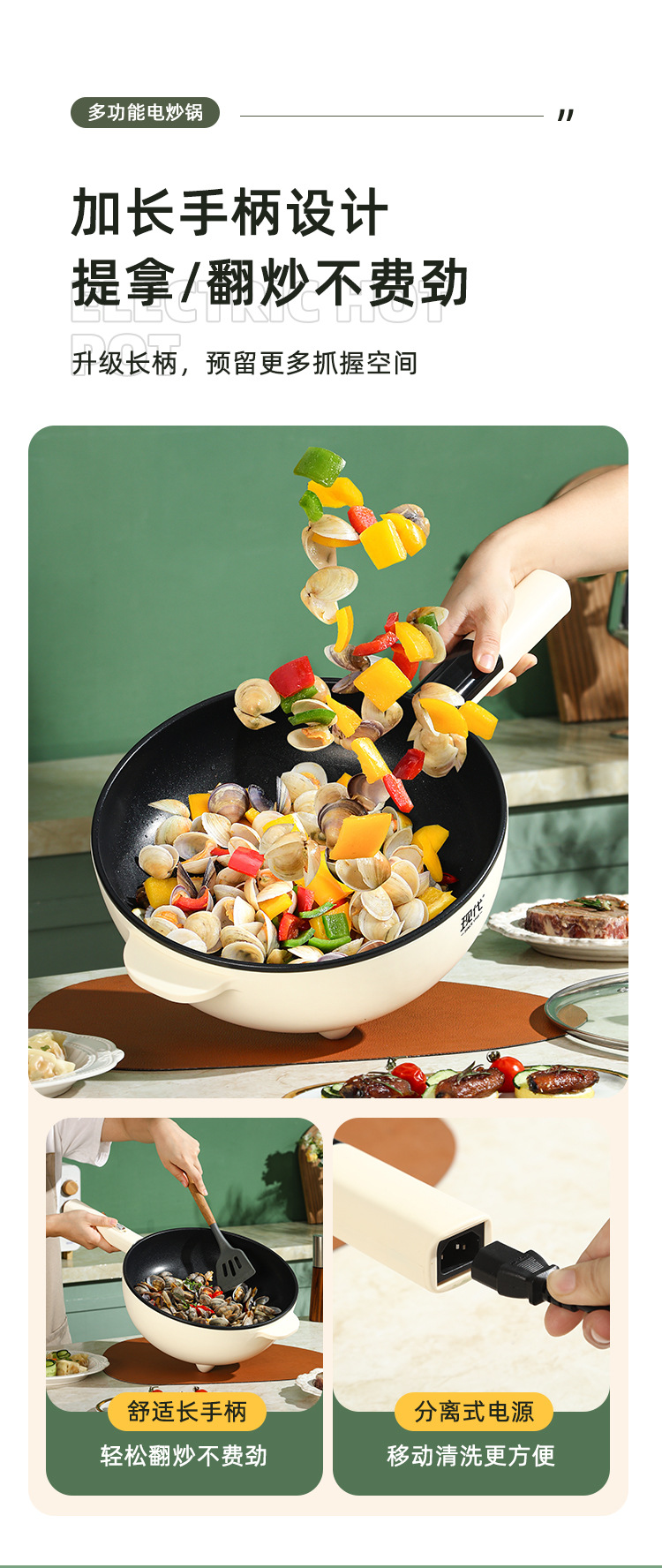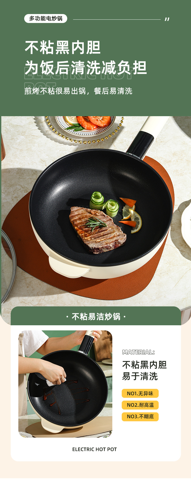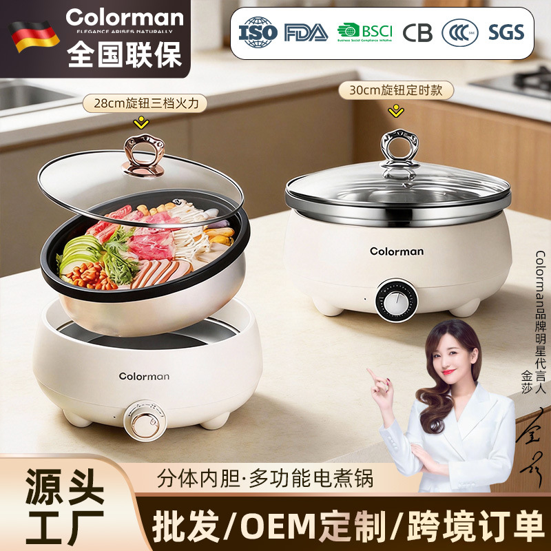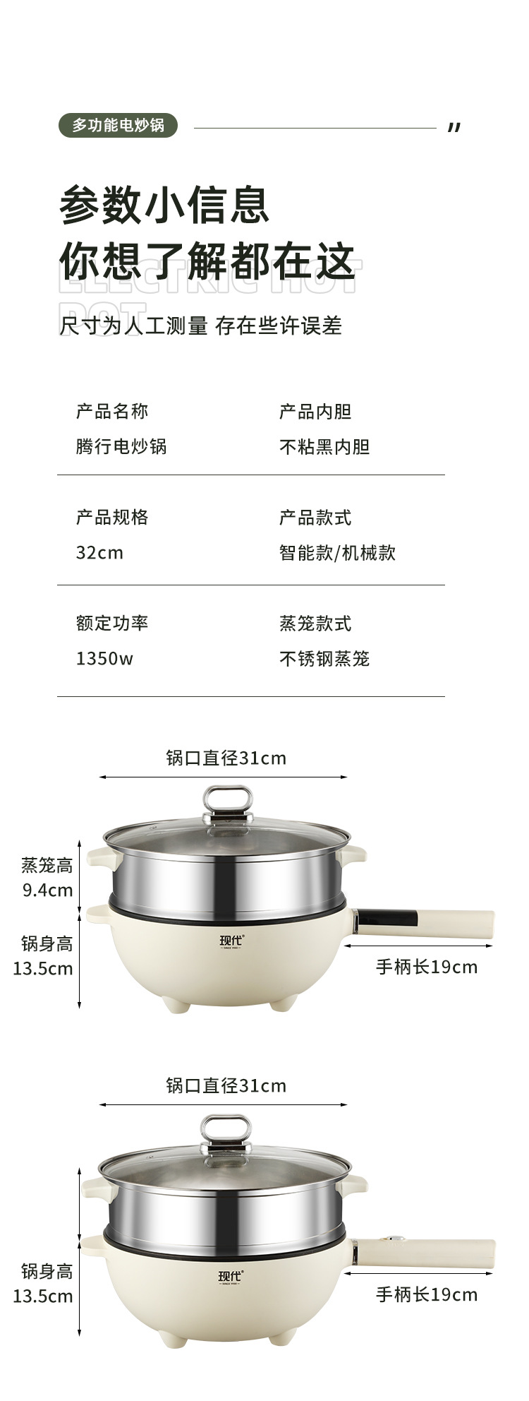 现代腾行电炒锅双层厨房多功能蒸煮涮煎炒菜锅一体不粘智能电煮锅