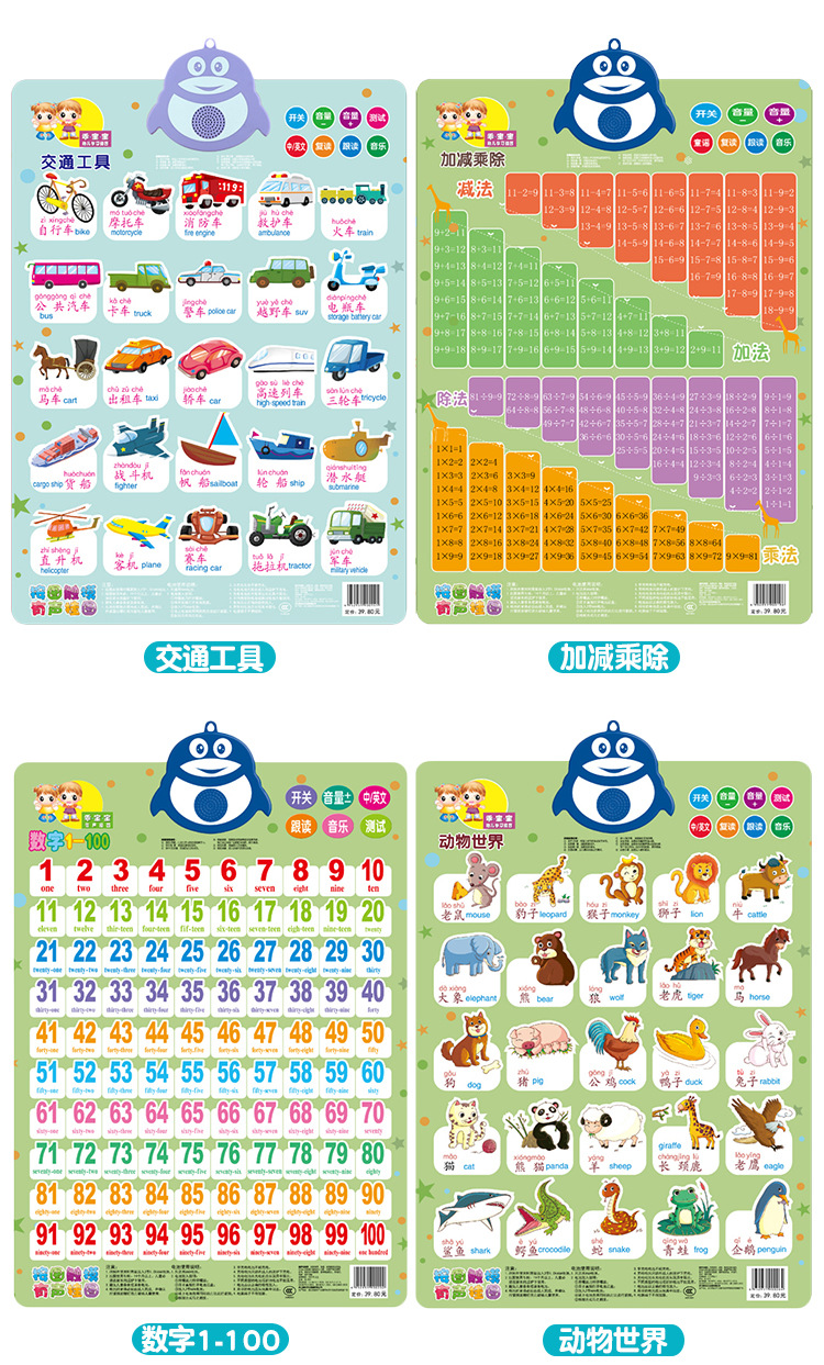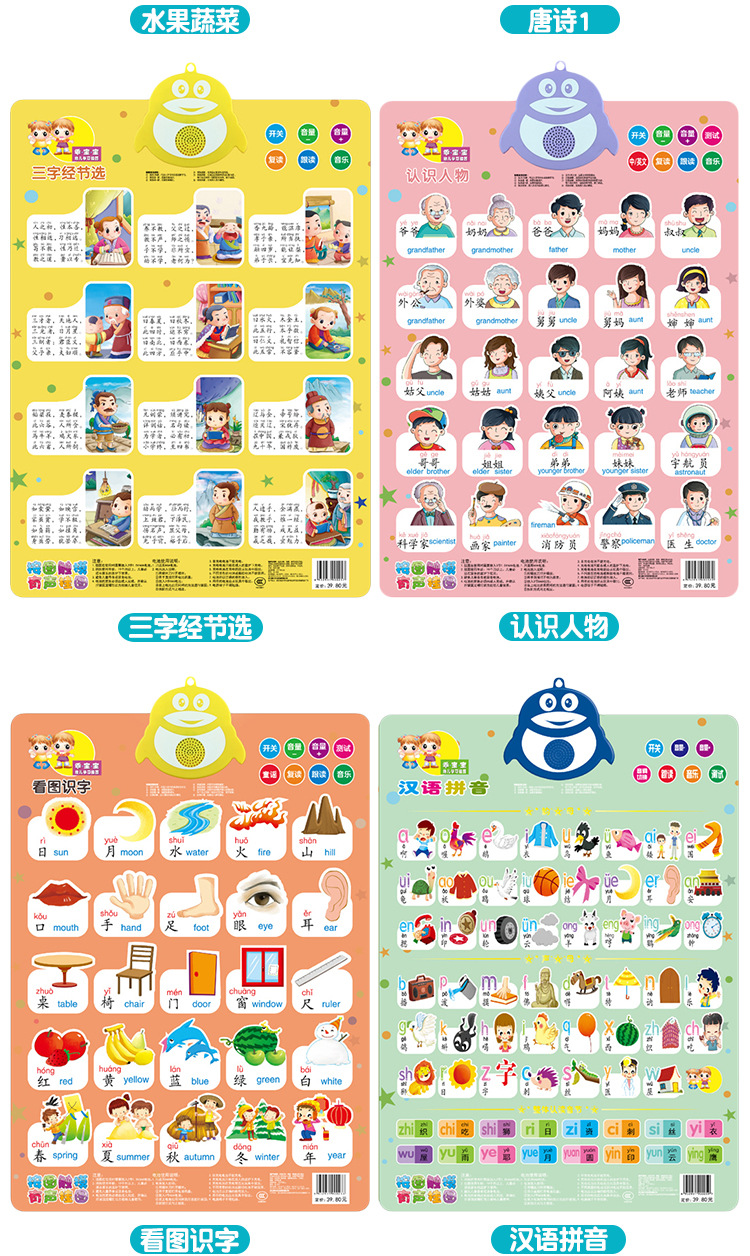 カラー 中国語ピンイン【電池フック付き】,数字1-100【電池フック付き】,幼児の識字【電池フック付き】,アルファベット【バッテリーフック付き】,果物野菜【電池フック付き】,知り合い【バッテリーフック付き】,動物の世界【電池フック付き】,加減乗法【電池フック付き】,交通機関【バッテリーフック付き】,カラーシェイプ【バッテリーフック付き】,図を見ると字が読めます。,唐詩【電池フック付き】,三字経【電池フック付き】,数字1-20【電池フック付き】