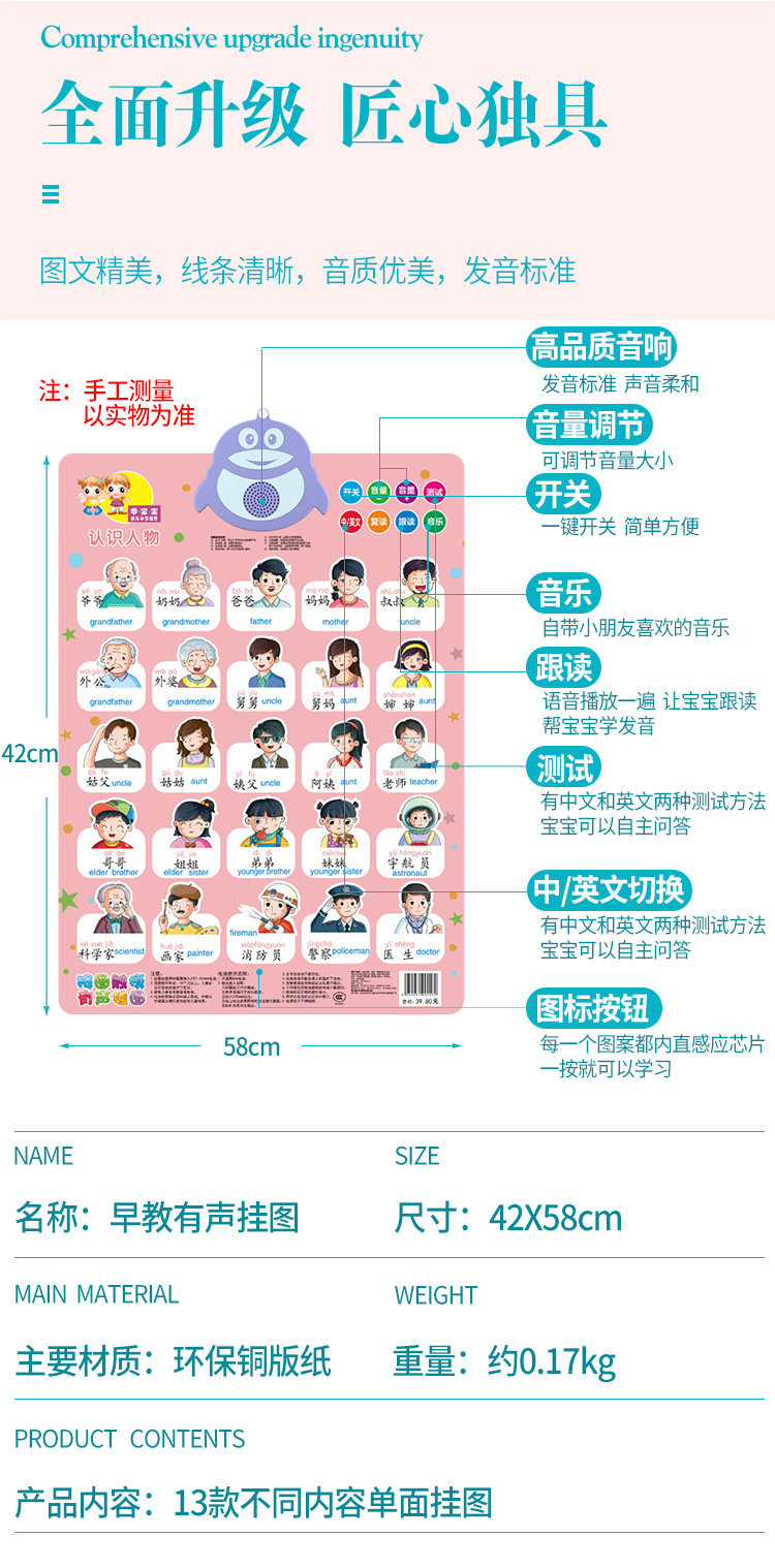 楽楽魚児童早教有声掛け図赤ちゃん認知啓蒙図ピンイン英語アルファベットメーカー直販