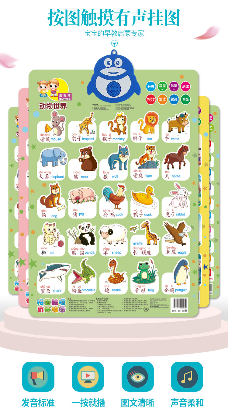 有声掛け図早教児童学ピンイン識字神器幼児赤ちゃん図認知カード発声壁貼り掛け絵