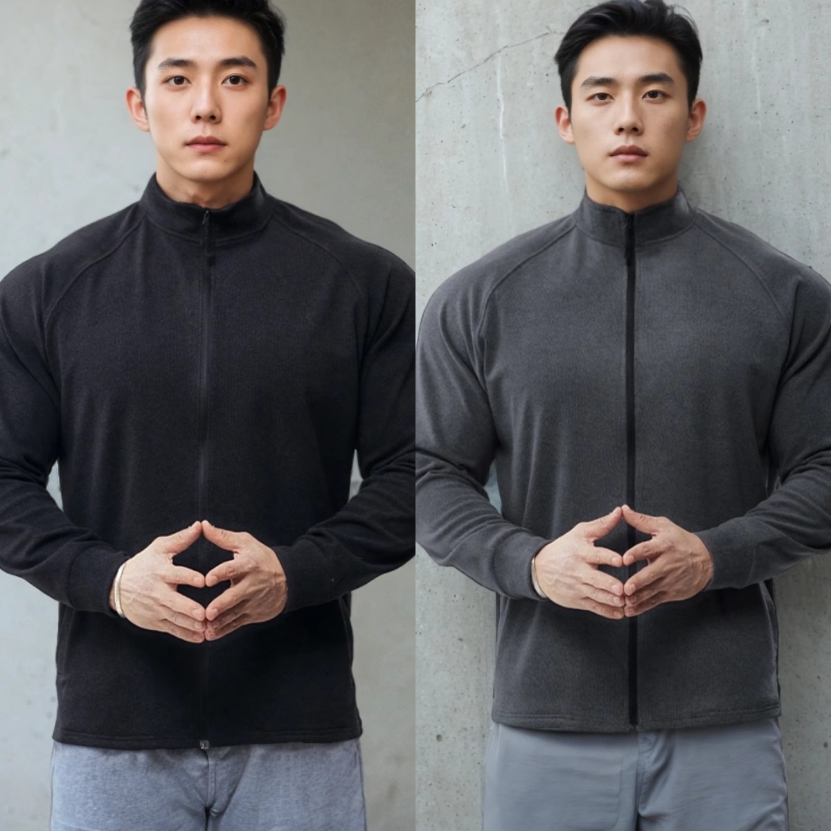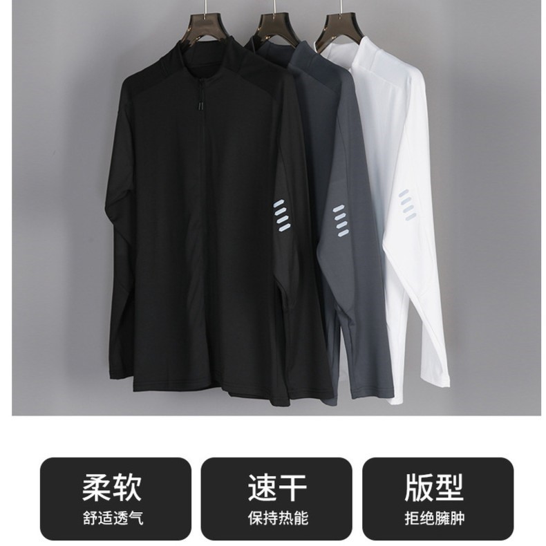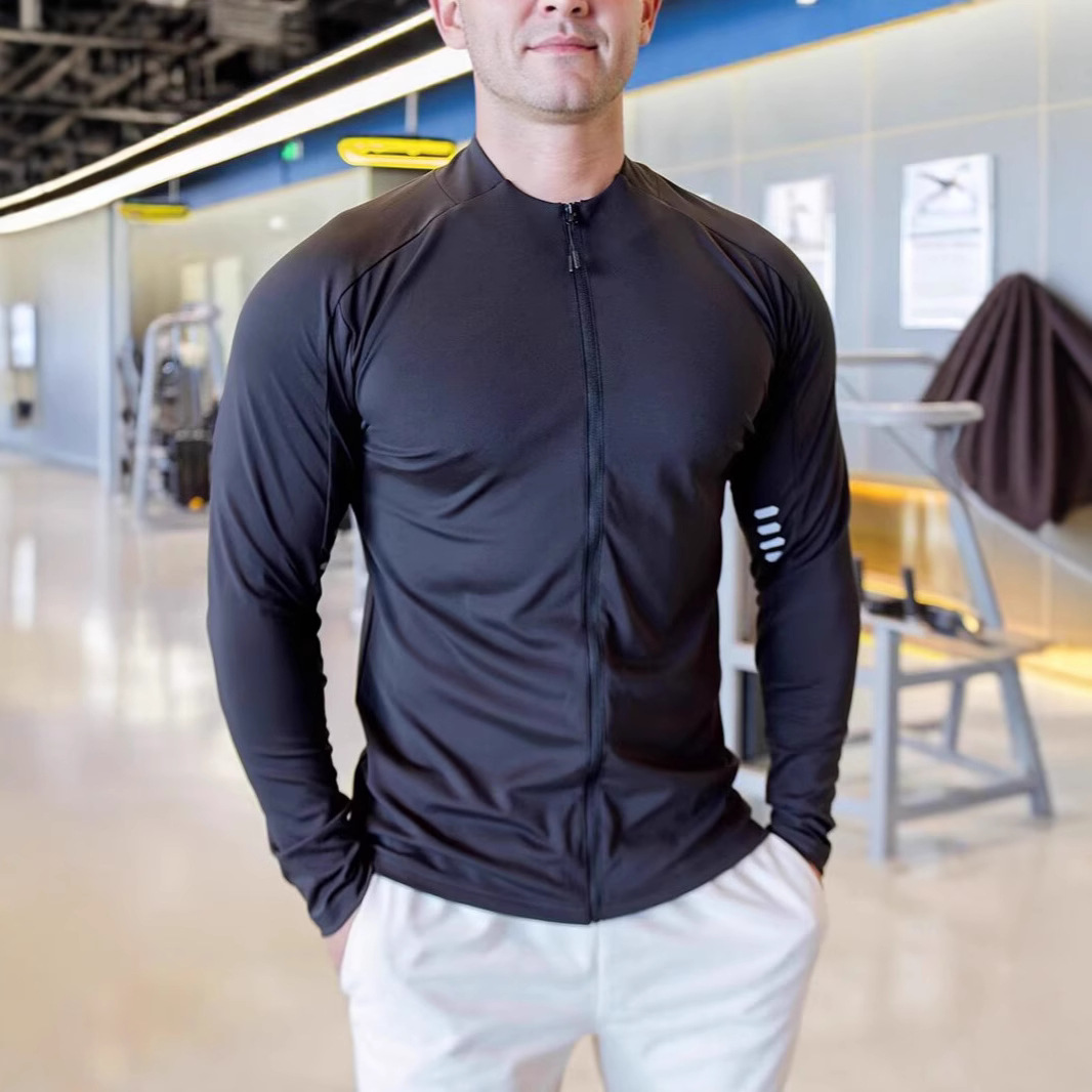 秋の新型男性立襟弾力騎行服日焼け止め長袖フィットネスランニングジッパー上着震え音代発