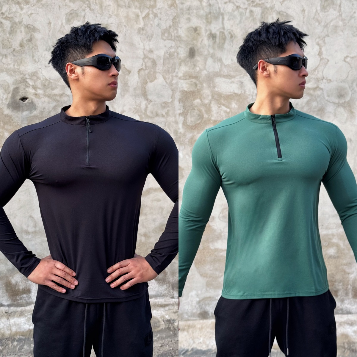 GYMARM春のソフトシェルクローン綿の半分の襟/丸首の修身カジュアルなフィットネスの高弾は底の長いtを打ちます。