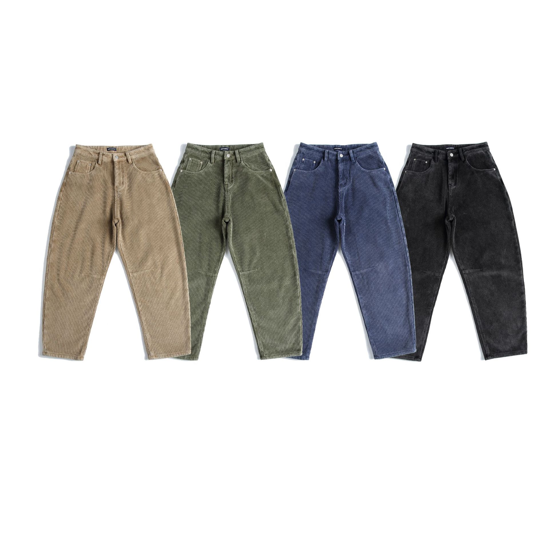 WHSDDY3日系潮牌25秋冬新款水洗加绒加厚微锥灯芯绒工装裤男K1015
