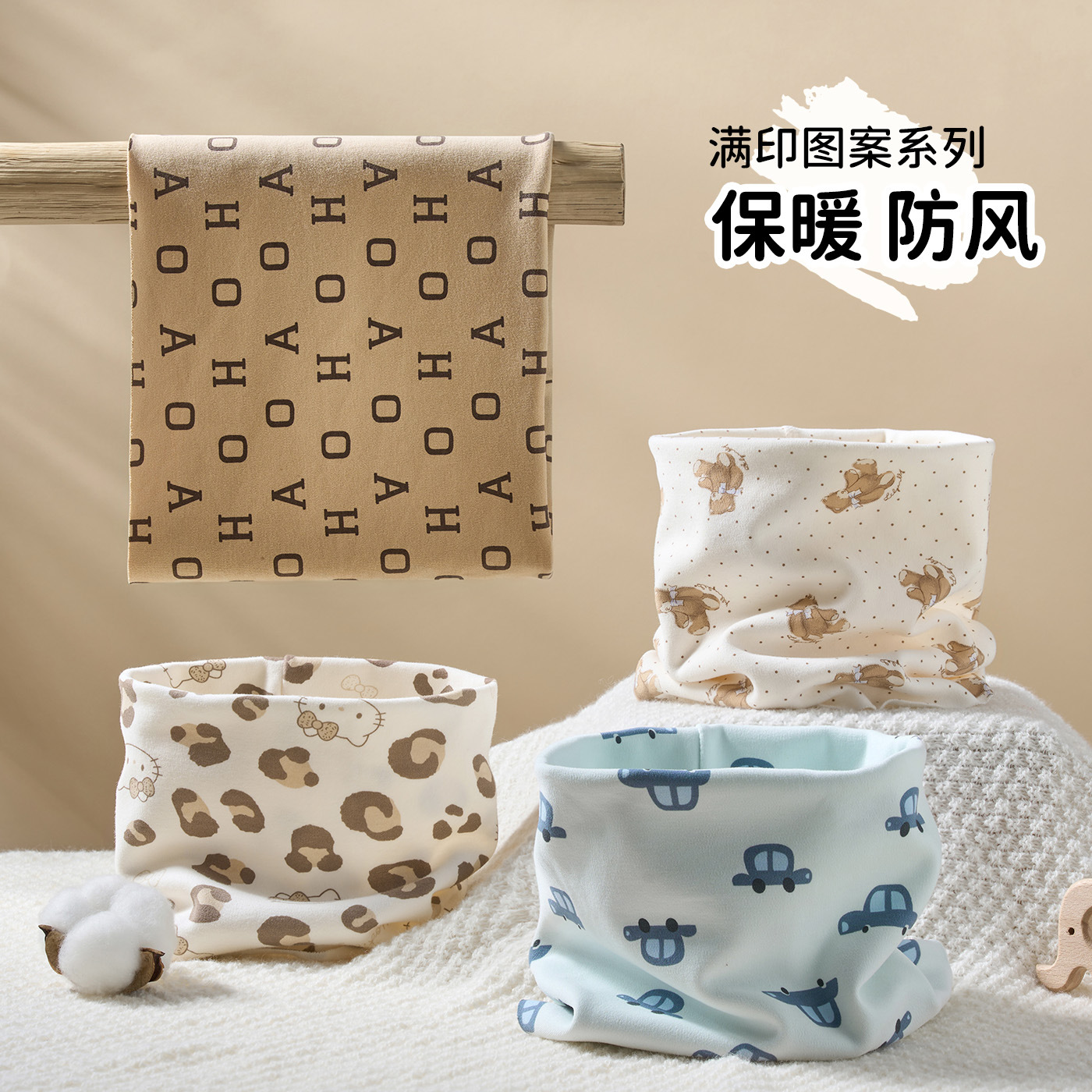 儿童围脖纯棉秋冬保暖防风宝宝脖套男女宝宝挂耳围巾套头护颈A类