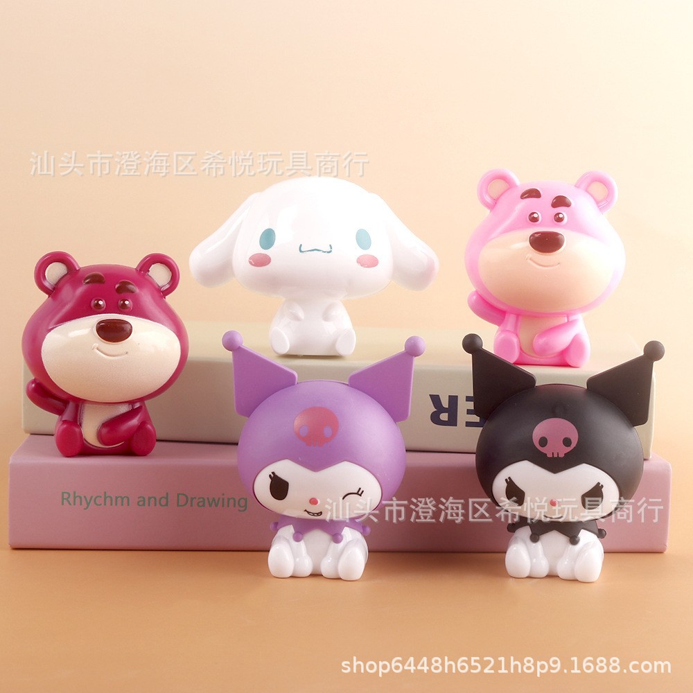お得なプラスチックの大きな頭の子供のクロミのイチゴの熊の車の車の置物のおもちゃの軽いケーキの装飾の置物