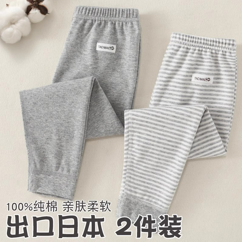 日本製2枚組子供用秋用パンツ、綿100%、男女兼用、裏起毛、純綿、保温性のある長ズボン、ベビー用綿毛糸パンツ