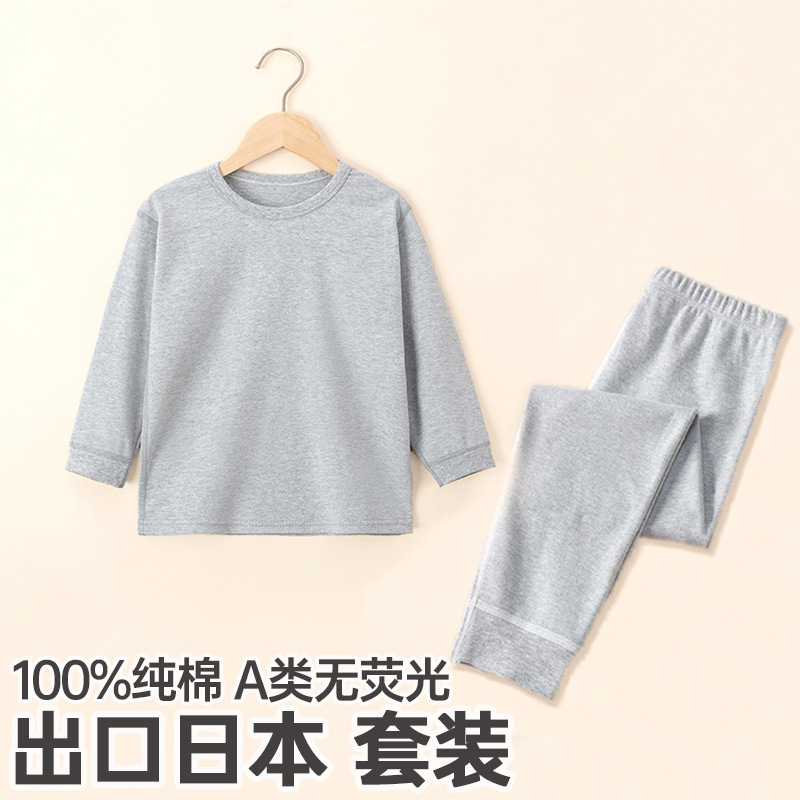 子供用綿質秋衣無骨下着シングル上着ホームウェアパジャマ秋冬縞中大童