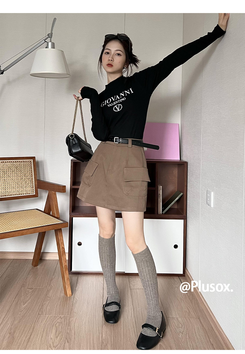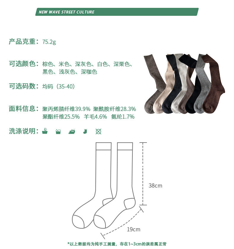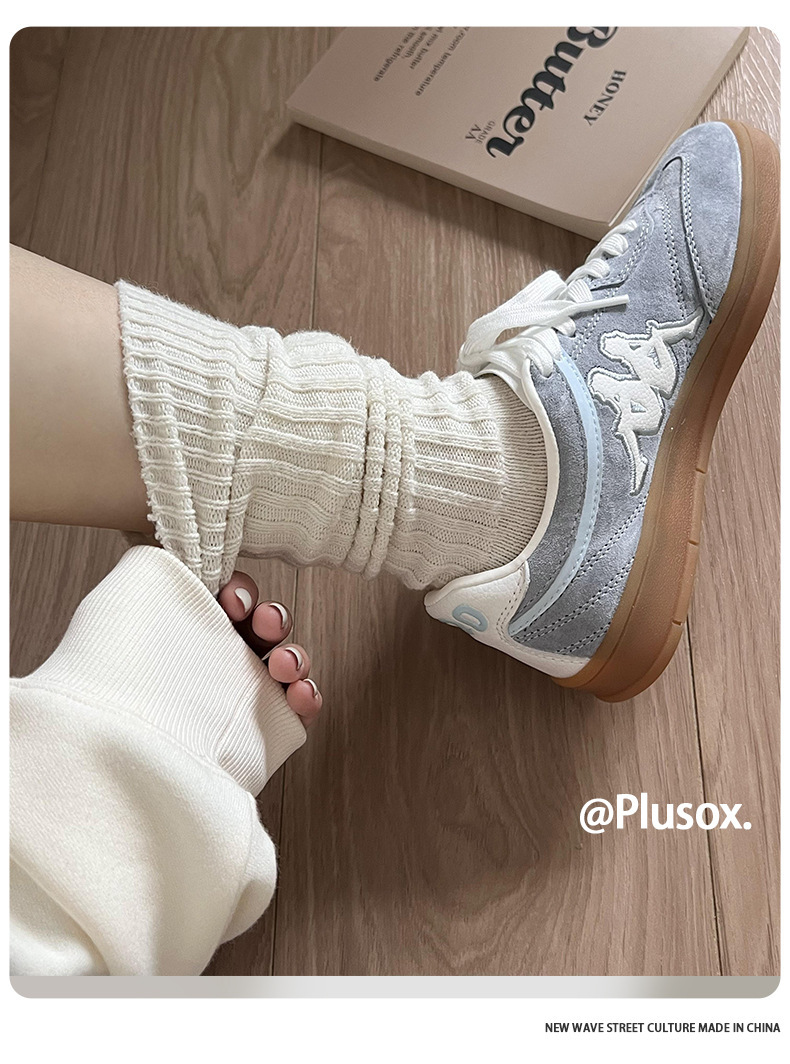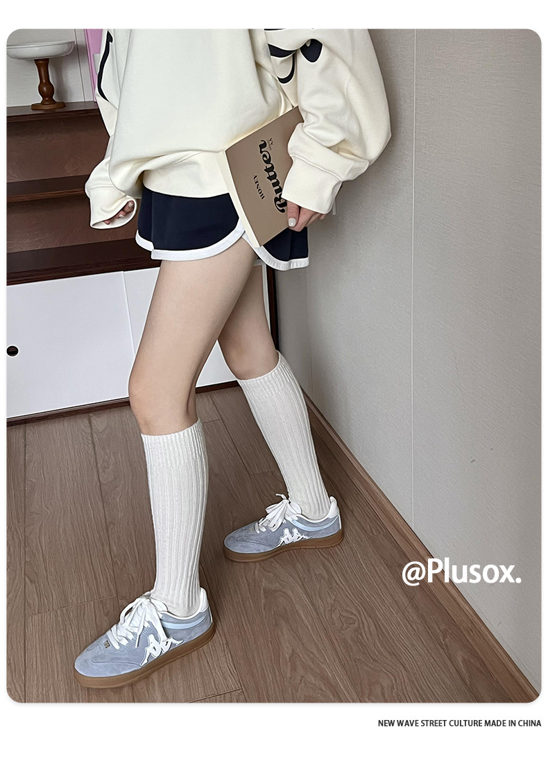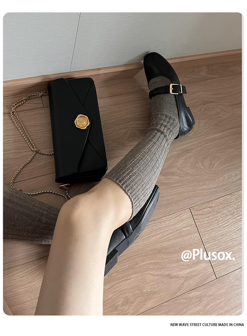 plusox羊毛小腿袜秋冬加厚袜子咖色双针堆堆袜日系女袜及膝袜
