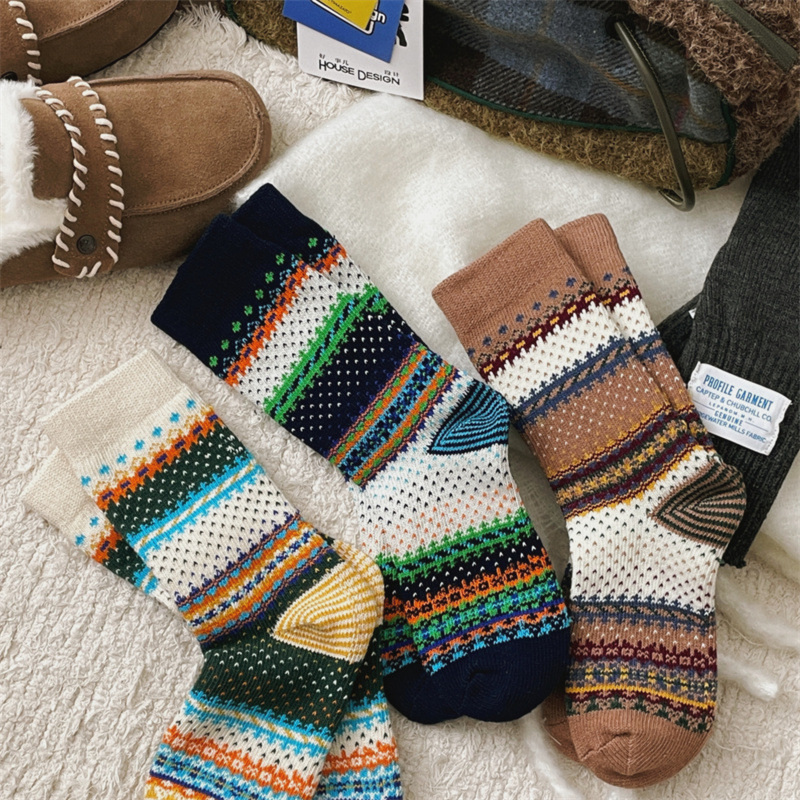 アメリカの軽豪華なレトロな民族風の太い線が街の風のフェルト島のカップルinsの中で筒の山の靴下の子供をかぶせます。
