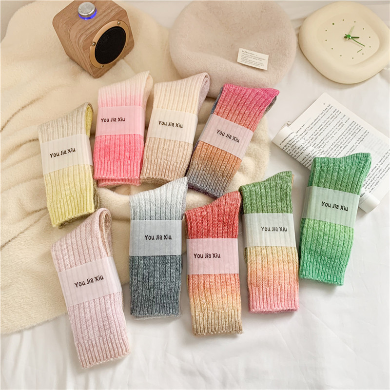 23秋冬新作靴下韓国版個性グラデーションカラーカシミヤ女子ミドルソックス