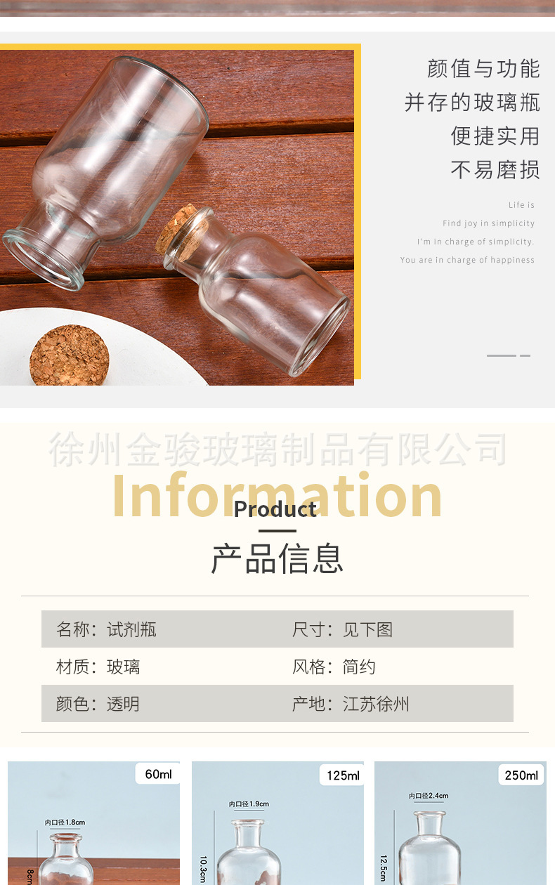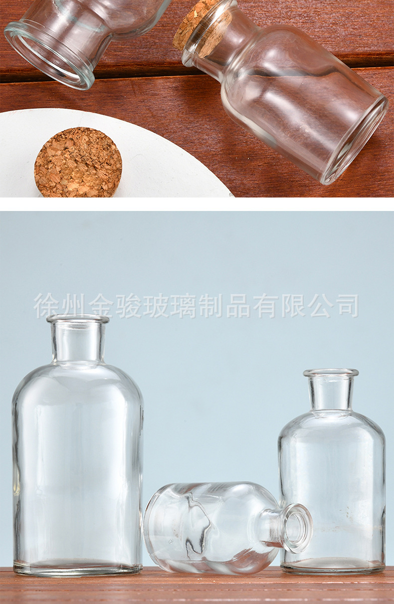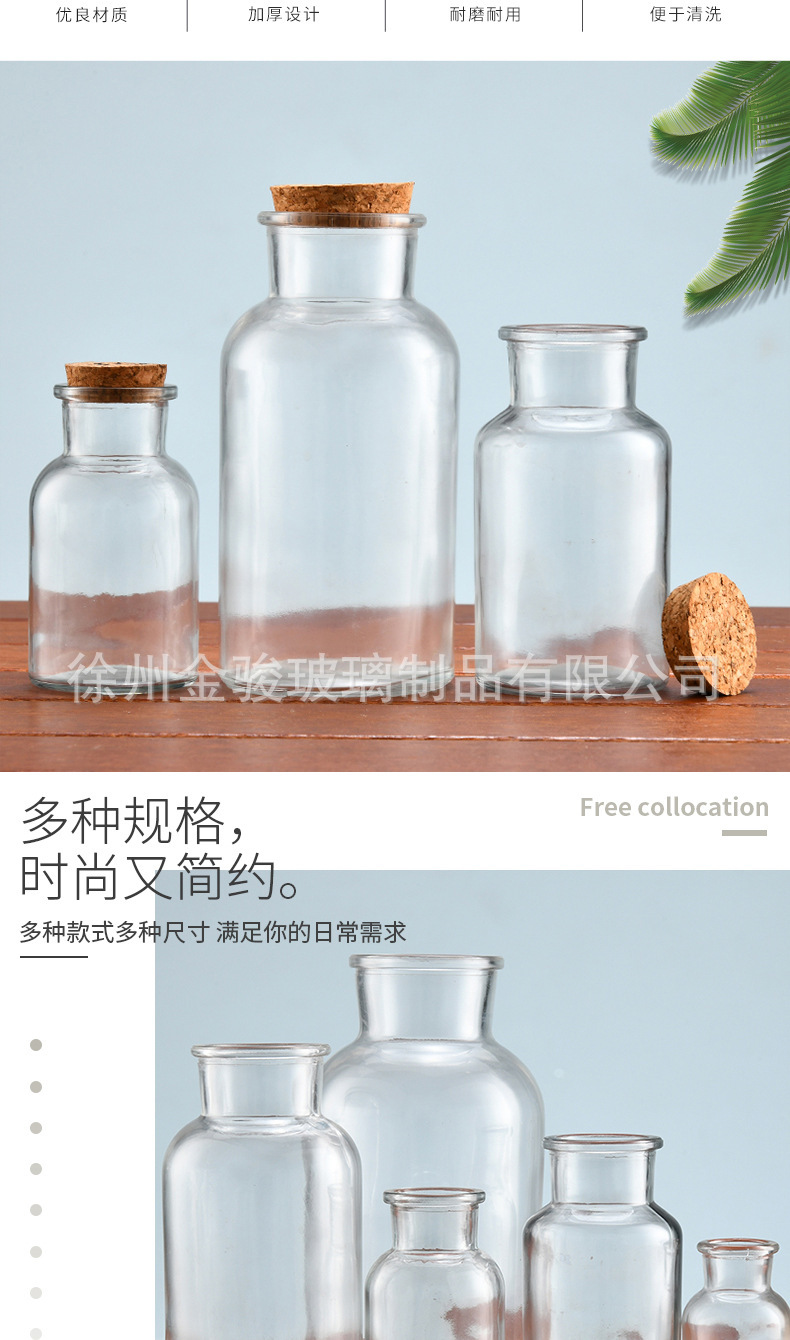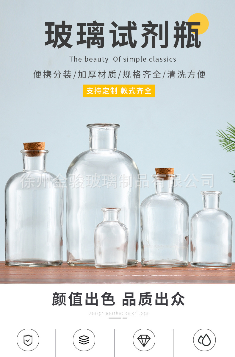 透明広口コルク試薬ガラス瓶広口小花瓶実験室標本ガラス瓶薬瓶