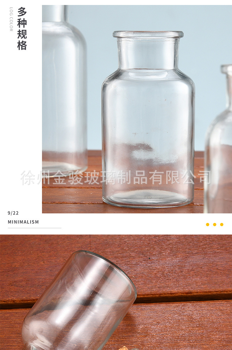 透明加厚玻璃试剂瓶实验室采样瓶广口试剂瓶实验室医学药剂分装瓶