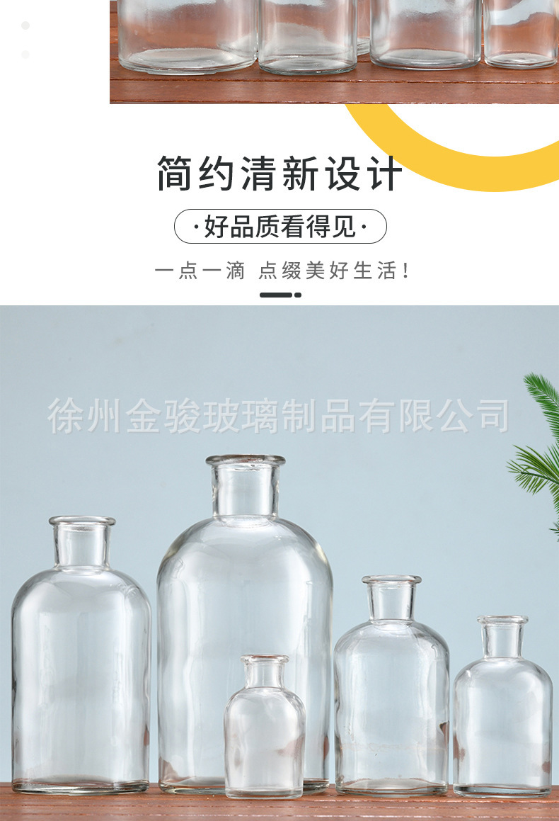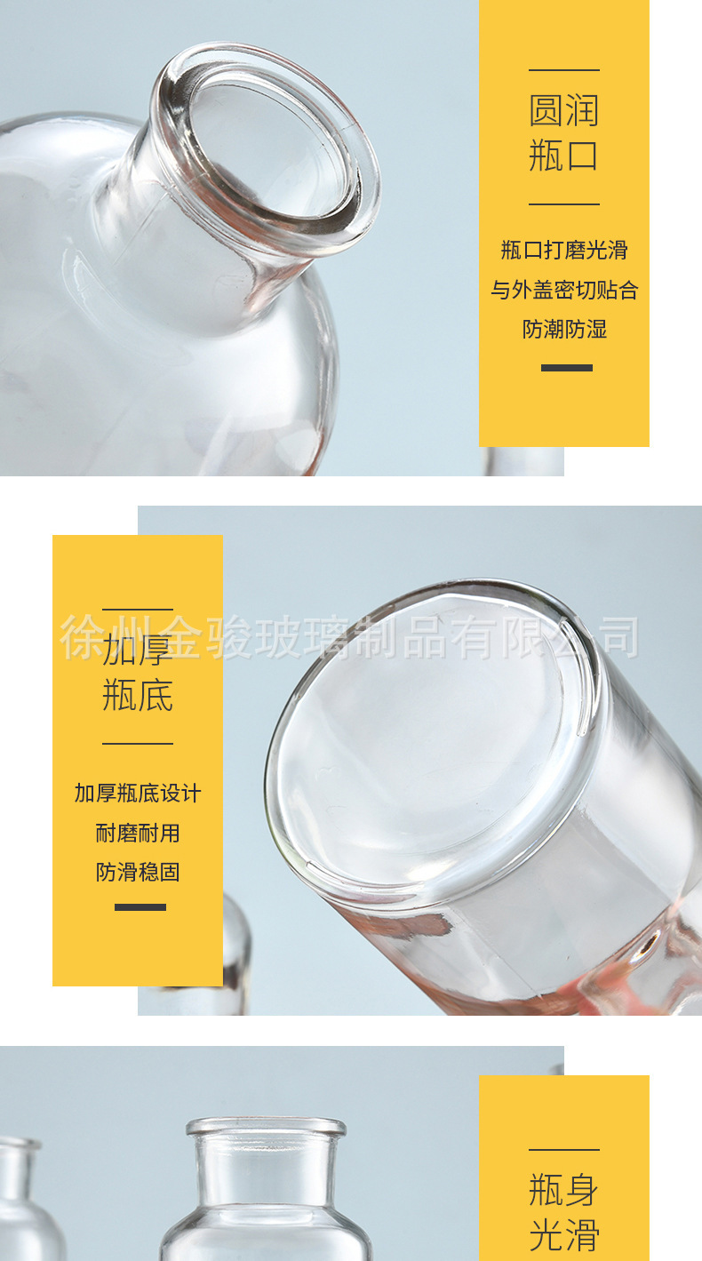 透明で厚い広口ガラス瓶試薬瓶透明ガラス化学薬剤瓶研口薬品分注瓶卸売り