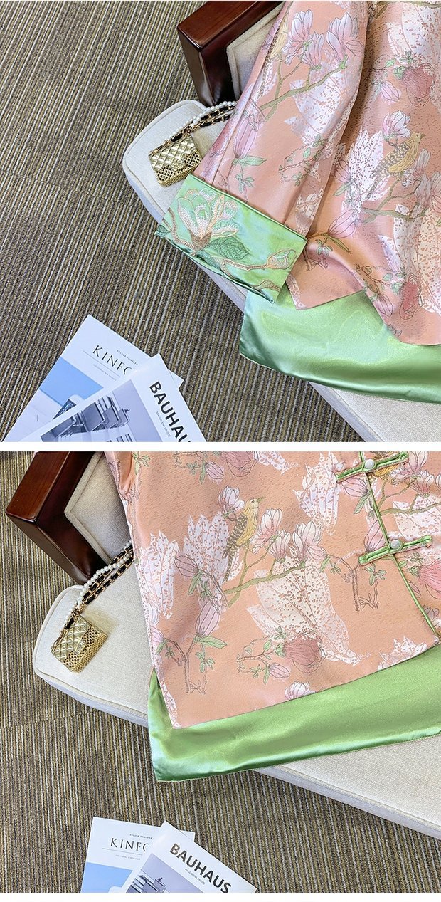 新中国式ベストレディース春绢糸シルク宋锦上着皿バックルカンタンチョッキサテン国风马クリップ