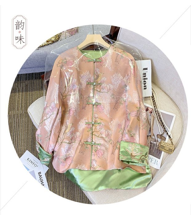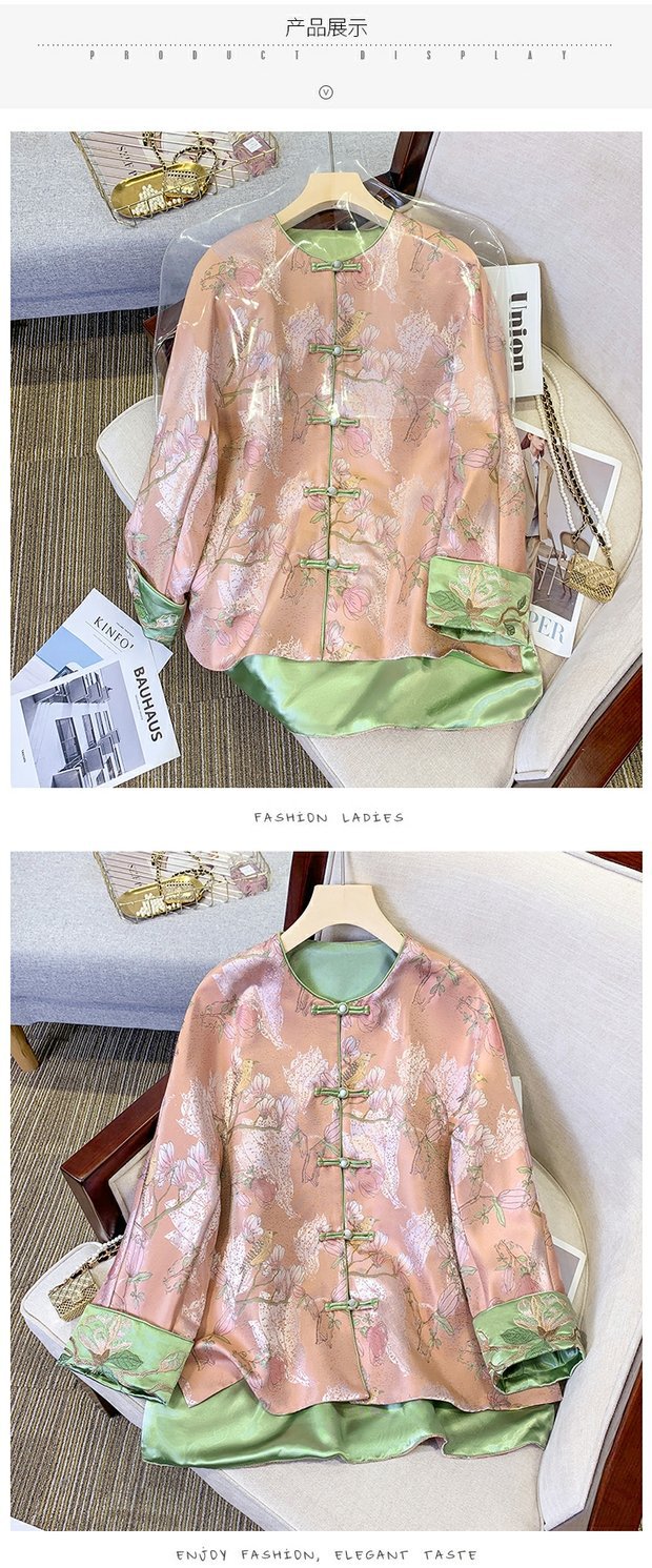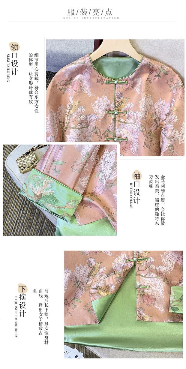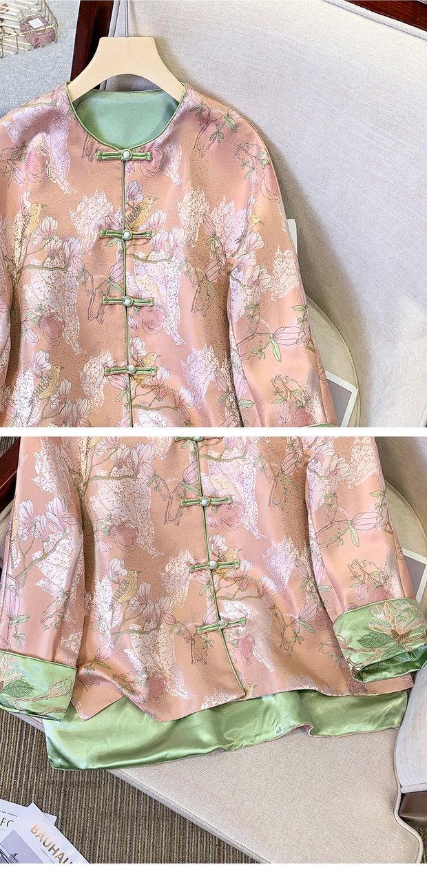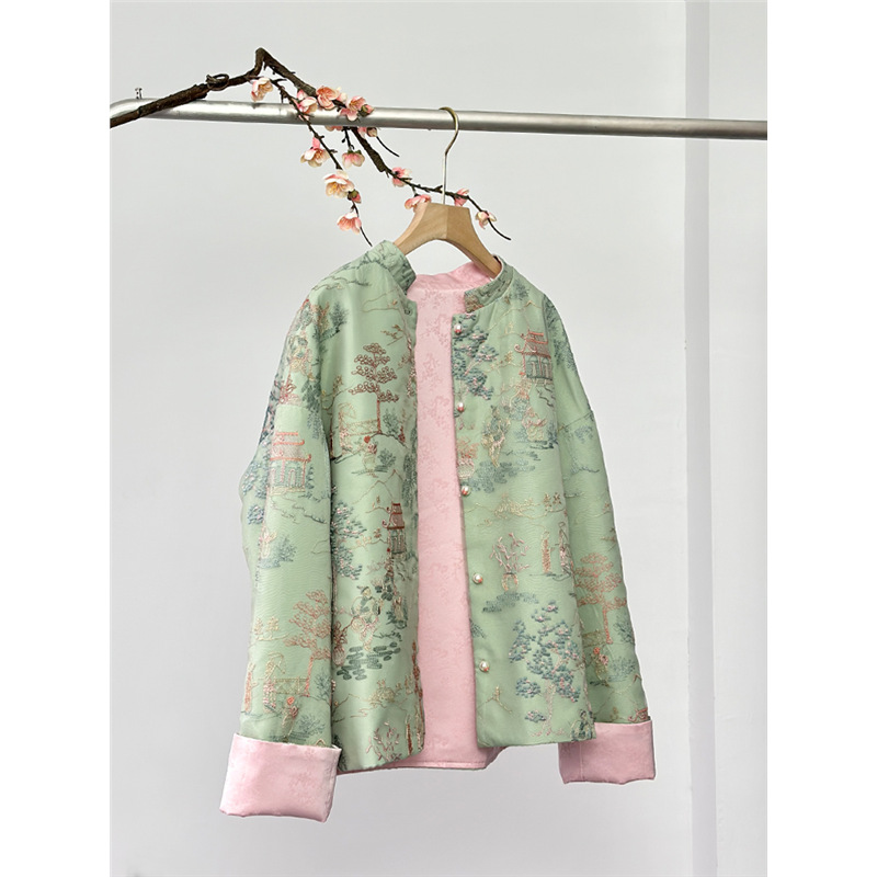 新中国風刺繍の両面に宋錦のボタンコートを着ています。女性2025春の唐服の若い版のサテンの上着です。
