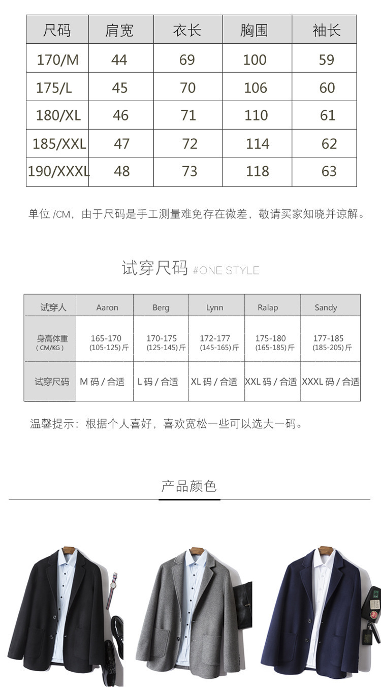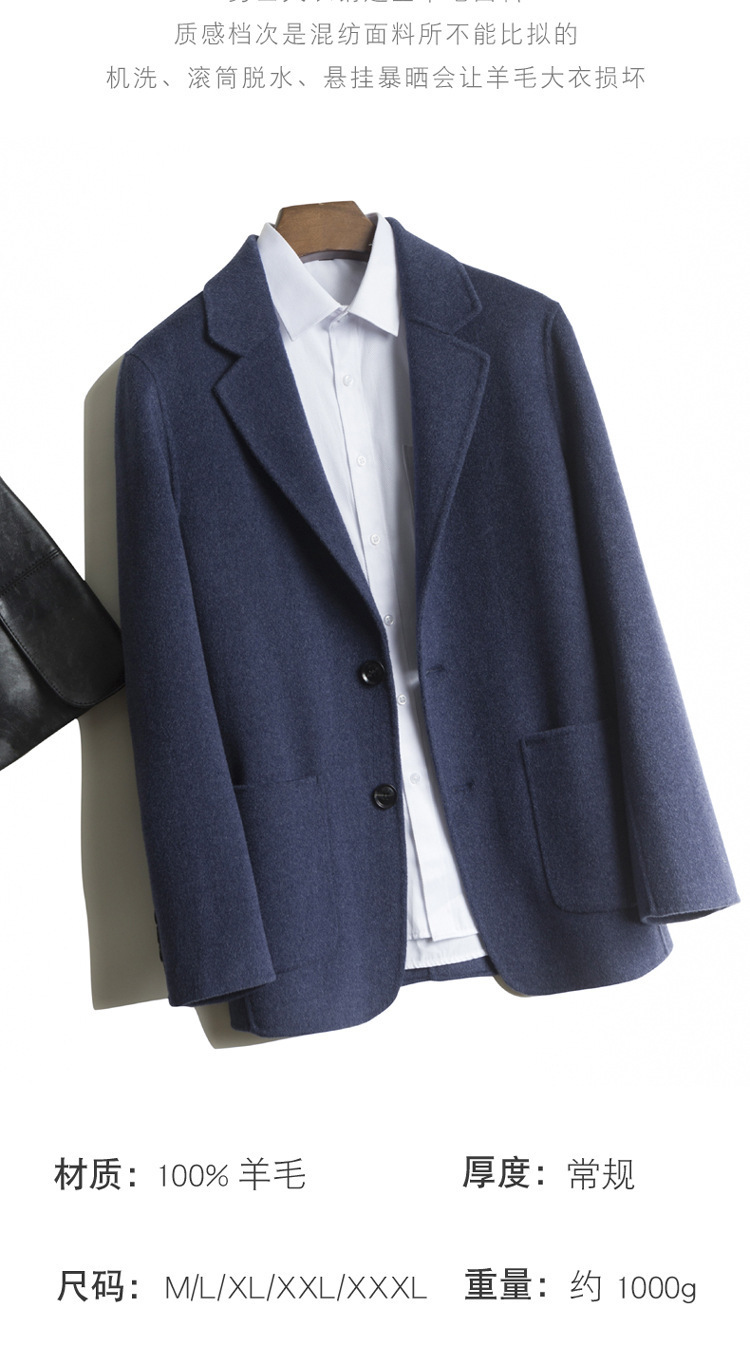 ウールの両面のコートの男性の毛のコートの2021秋冬の新型のスーツのカジュアルなカシミヤのラシャのスーツ