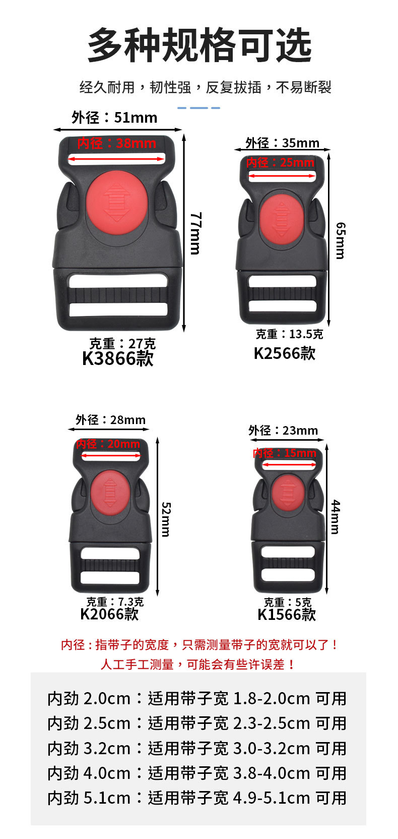 メーカーはプラスチック製のスプリングバックル、カーボンバックル、豚鼻バックル、ナイロン丸玉バックル、マッシュルームバックル、ストップバックル、スプリングバックルを供給しています。