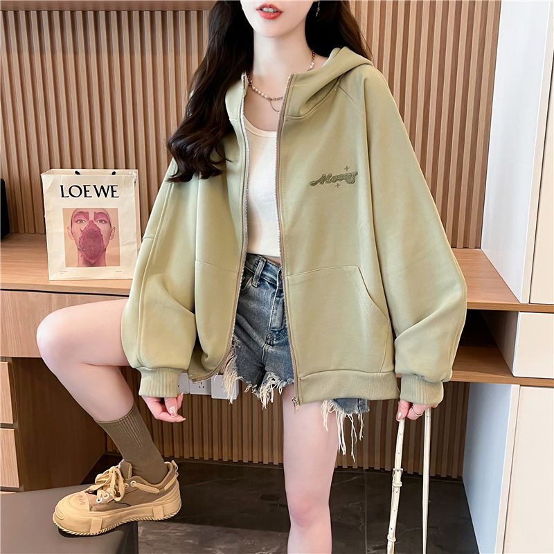 2025新款开衫拉链卫衣女连帽设计感刺绣字母春秋季薄款外套女批发