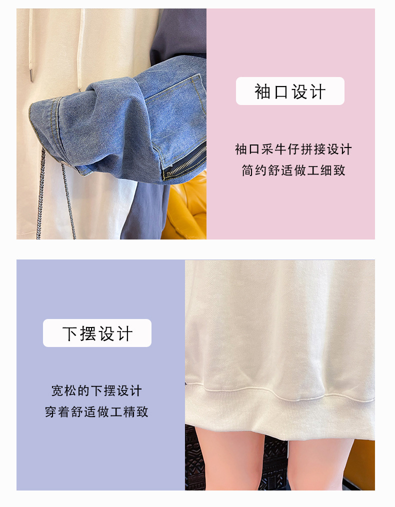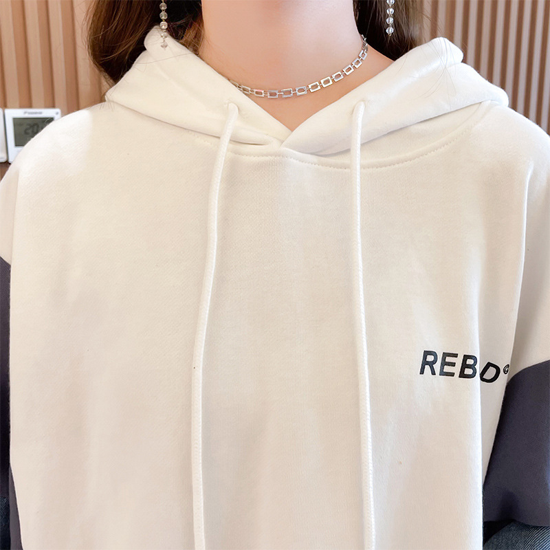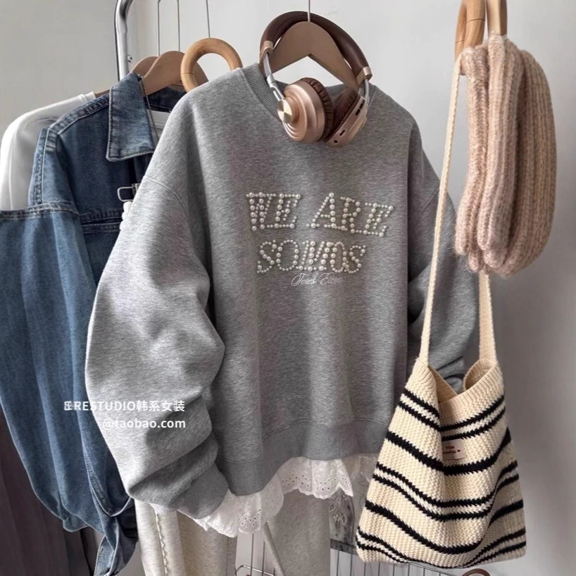 韩系类似花边假两件重工钉珠字母卫衣女装潮设计甜美洋气百搭休闲