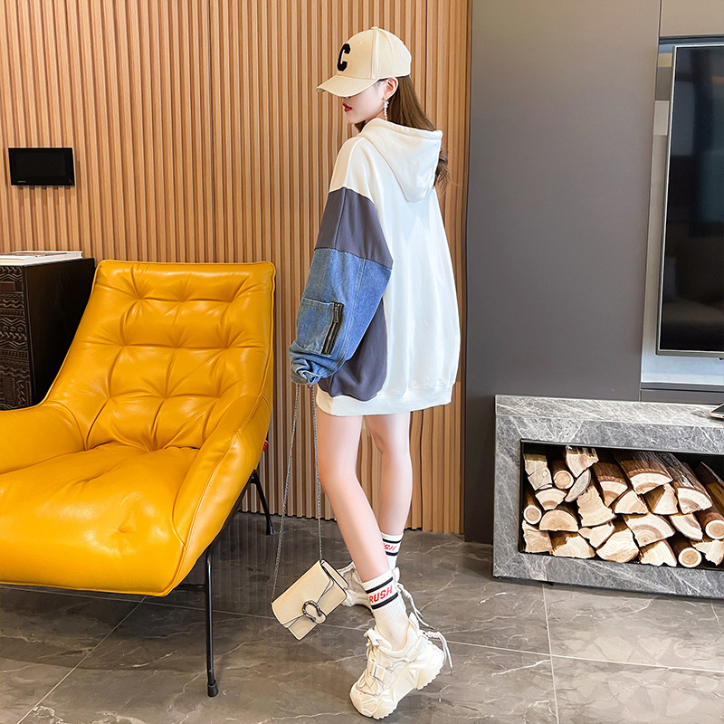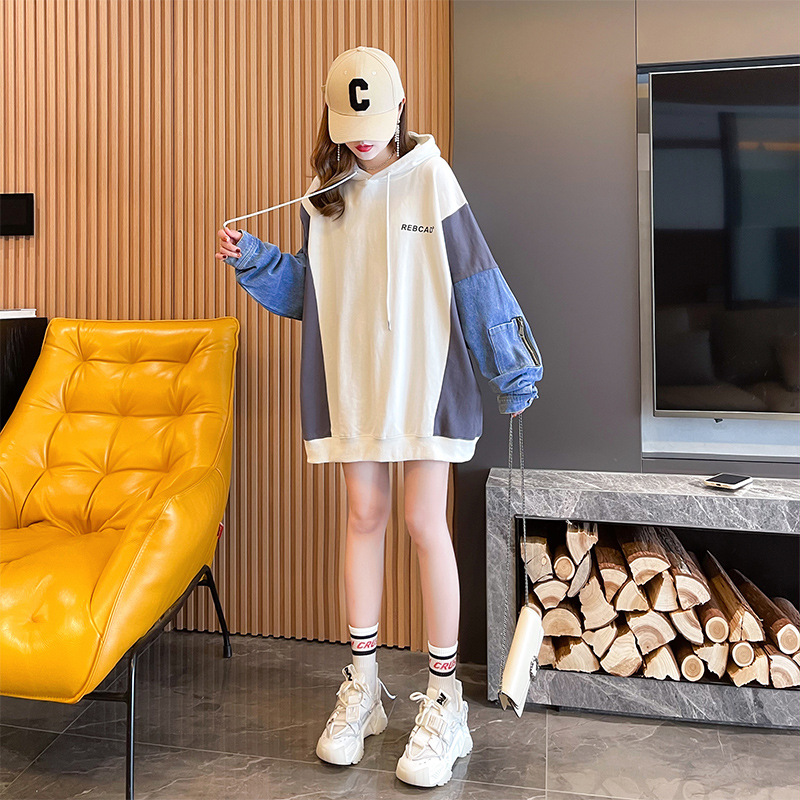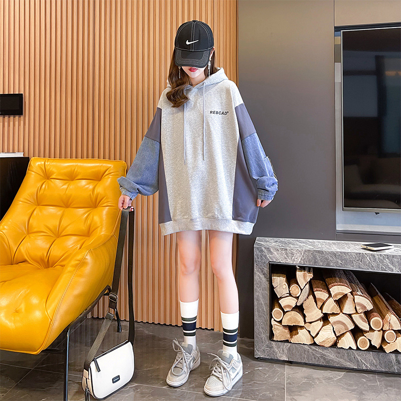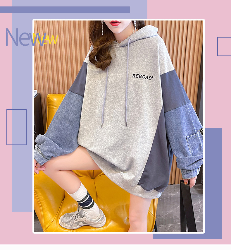 怠惰な風の衛衣の女性のゆったりした中の長さの漫画の図案のカジュアルな洋風のデザイン感は色にぶつかって丸首の上着をつなぎ合わせます。