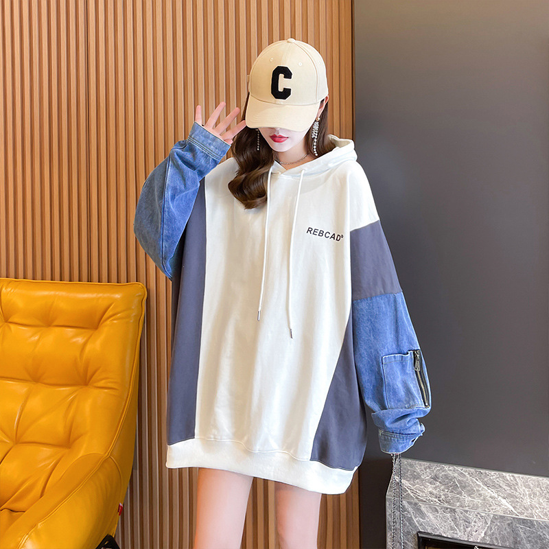 厚手のスウェットの女性は冬のファッションがゆったりしていて、やせています。2023年の漫画のウサギのアルファベットの刺繍と帽子のスウェットの女性の潮があります。