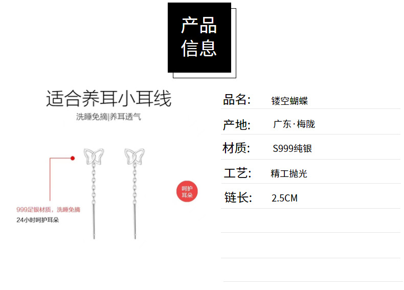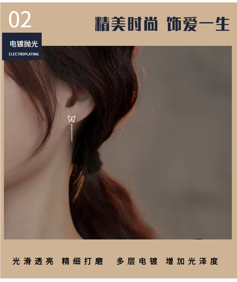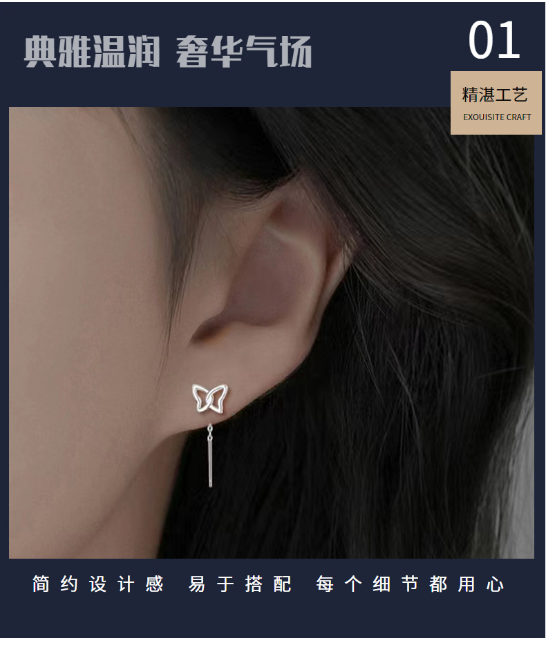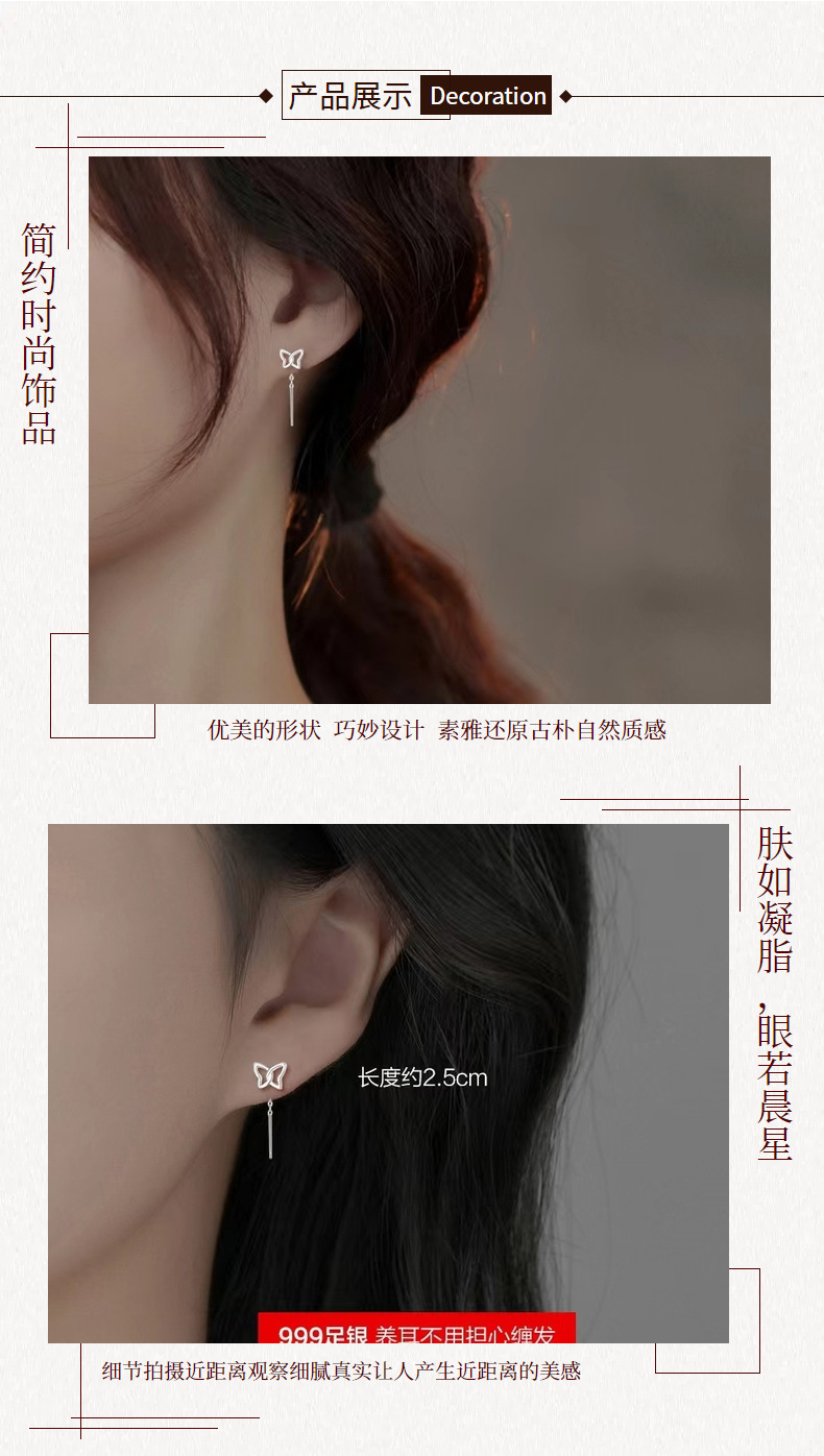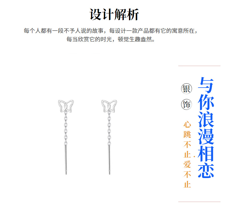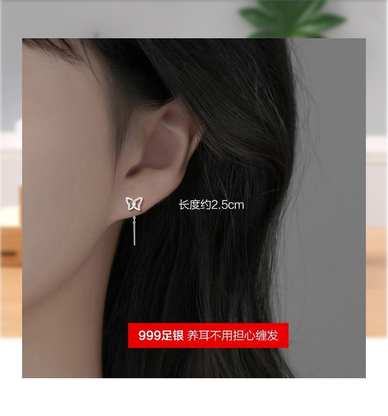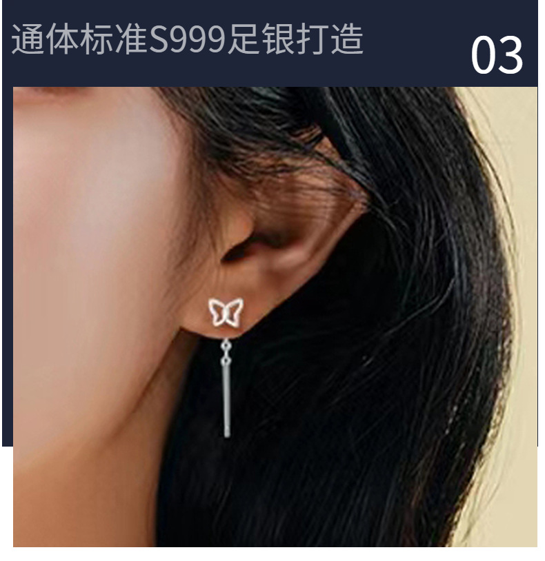 S999純銀透かし彫り蝶耳糸小衆流蘇イヤリング女軽贅沢ins風高級2023新耳飾り