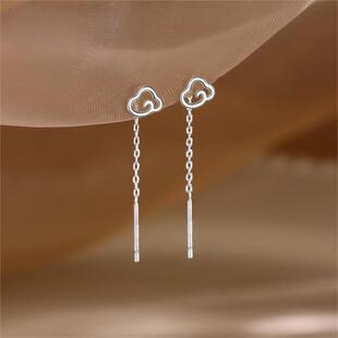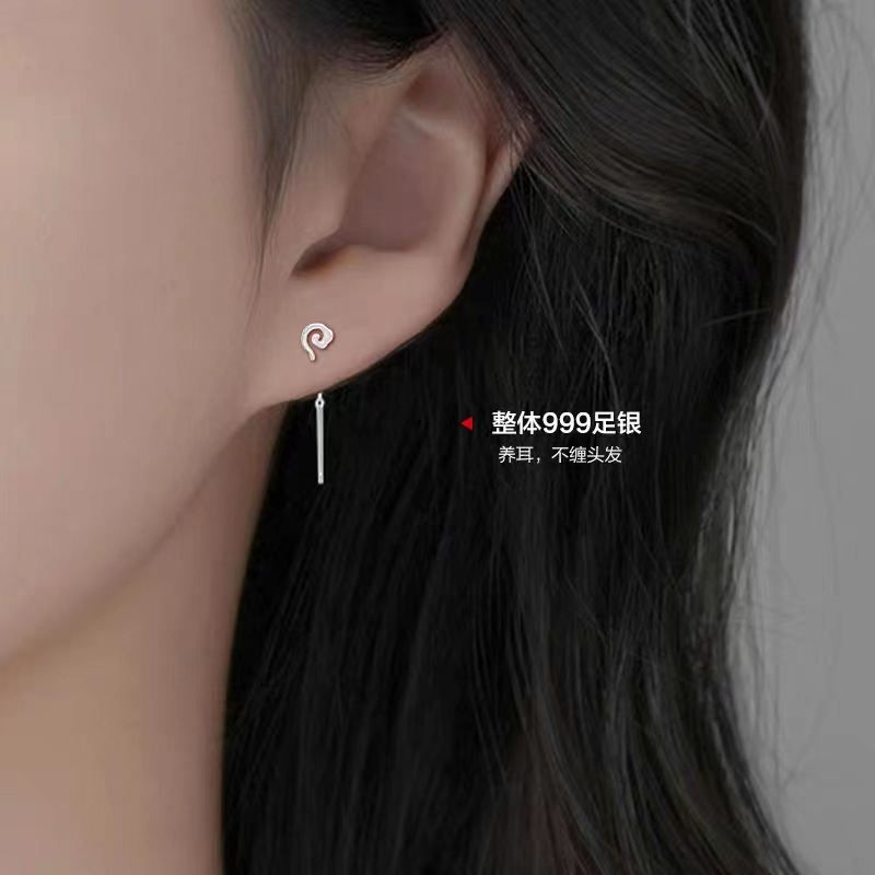S999足銀非対称祥雲耳糸女小衆設計イヤリング養耳穴洗睡無摘耳骨耳飾り女