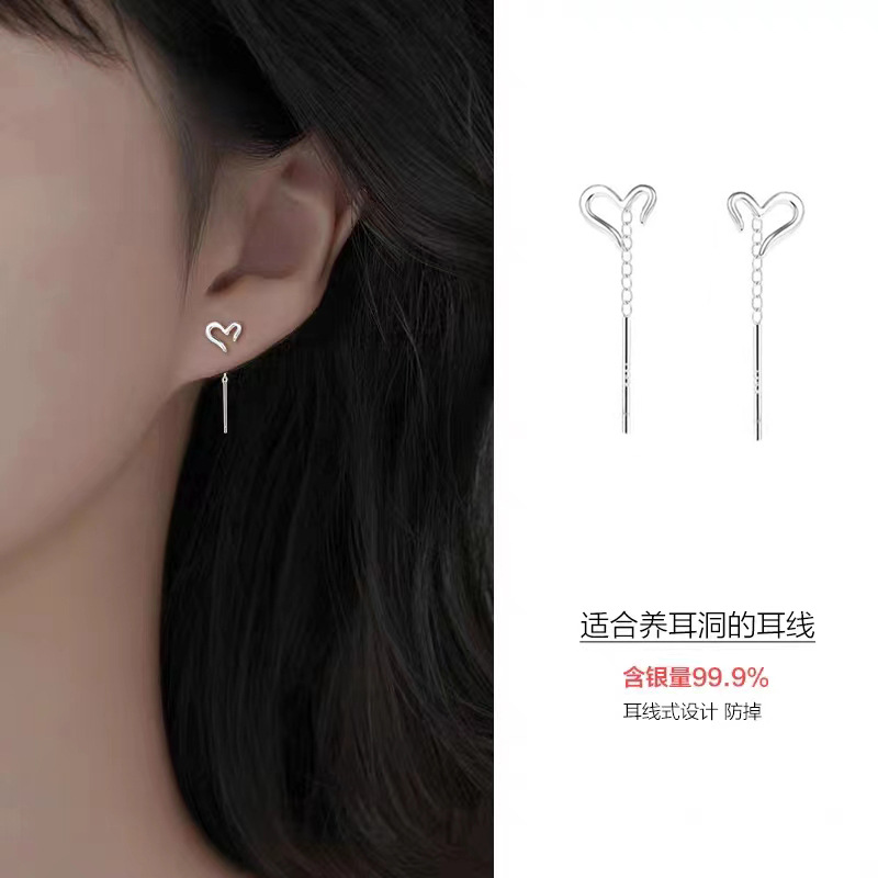S999足銀の口の愛の耳の線の女性の軽い豪華な小さい大衆の設計のイヤリングは耳の穴を養って寝ます。