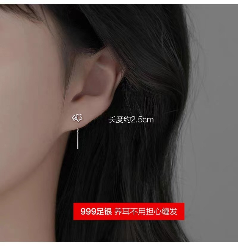 S999足の銀の透かし彫りの星の耳の線の女性の大衆はイヤリングの耳のチェーンの純銀を設計して耳のチェーンを養ってピアスを洗って寝ます。