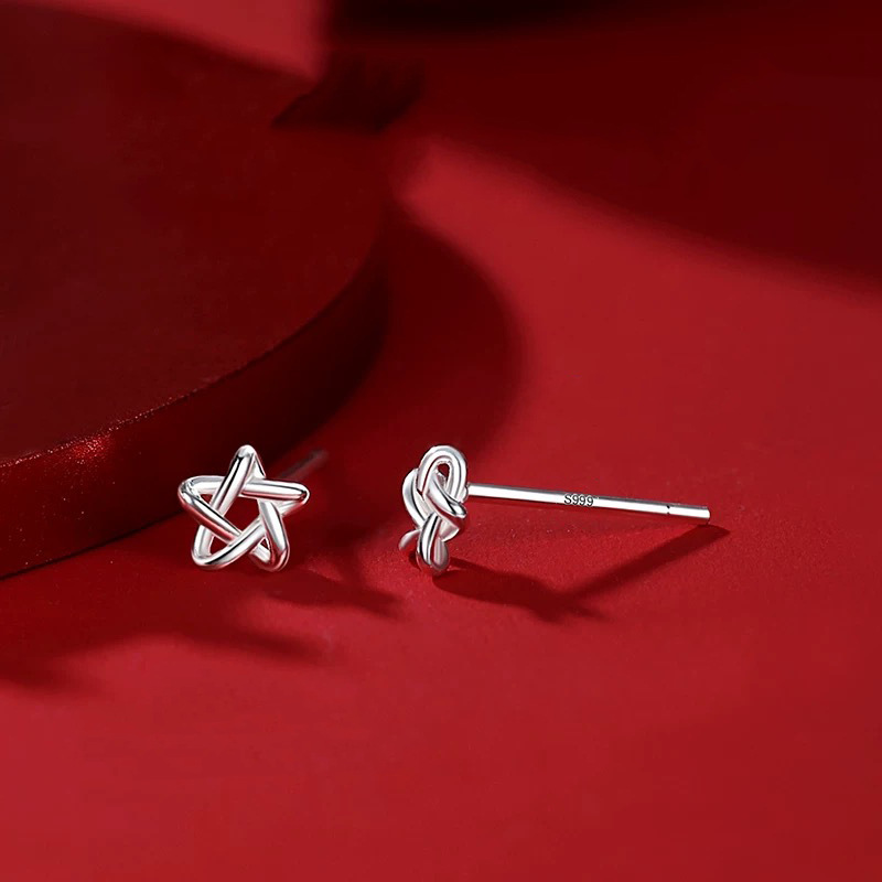 S999足銀透かし彫り五角星ピアス小衆デザインシンプルイヤリング軽豪華高級小型耳穴ピアス