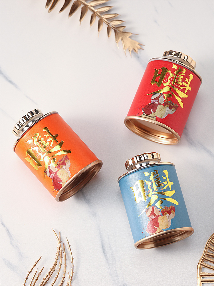 新商品国風茶葉缶携帯トランペット密封茶葉鉄箱紅茶緑茶通用茶葉缶空缶現物