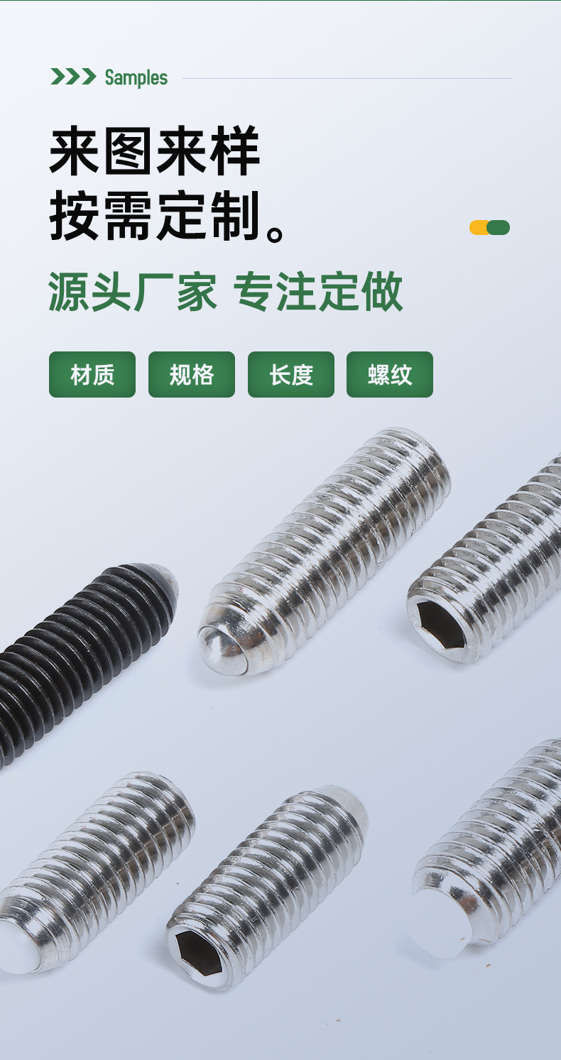 304ステンレスPOMゴム頭波珠ねじプラスチック子ねじ位置決め珠弾球頭プランジャ内六角ねじ